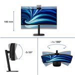 The Philips 3000 series 34B2U3600CH/75 computer monitor features a sleek, modern aesthetic with a subtle curve that enhances immersion without overwhelming workspace aesthetics. Its slim bezels maximise screen real estate, ideal for multi-monitor setups. The matte finish reduces glare, maintaining clarity in various lighting conditions, while the robust stand offers flexible adjustments for ergonomic comfort.