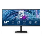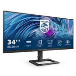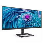 The Philips E Line 346E2LAE/75 LED display features a sleek, modern design with ultra-narrow bezels that maximise screen space and minimise distractions. Its matte finish reduces glare, making it suitable for various lighting conditions in office environments. The adjustable stand and cable management system contribute to a clean, organised workspace that complements any professional setting.