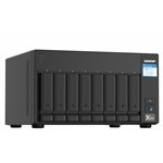 The QNAP TS-832PX features a sleek, professional chassis with a compact footprint suitable for office environments. Its front LED indicators provide clear status updates, while the robust build ensures durability for continuous operation. The device balances form and function, making it an unobtrusive yet powerful addition to any IT setup.