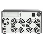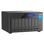 The QNAP TVS-h874 boasts a sleek, professional chassis designed for efficient airflow and quiet operation in office environments. Its modular drive bays allow easy expansion and maintenance, while front-panel indicators provide clear system status at a glance. The device’s compact footprint fits comfortably in server rooms or IT closets without compromising on performance.