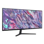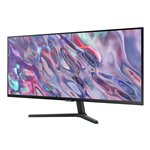 The Samsung LS34C500GAEXXY computer monitor boasts a sleek, modern design with minimal bezels, creating an immersive viewing experience. Its matte finish reduces glare, ideal for bright office environments. The sturdy yet elegant stand complements contemporary office aesthetics while providing ergonomic adjustments for user comfort. This monitor seamlessly fits into any professional workspace, enhancing both functionality and style.