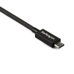 The StarTech.com TBLT34MM80CM Thunderbolt cable features a sleek, professional design with a robust yet flexible jacket that resists wear and tear. Its compact 80cm length balances convenience and tidiness, making it perfect for modern office desks. The connectors are precision-engineered for secure, stable connections that minimise signal loss. Overall, it combines functionality with a clean aesthetic suitable for any business environment.