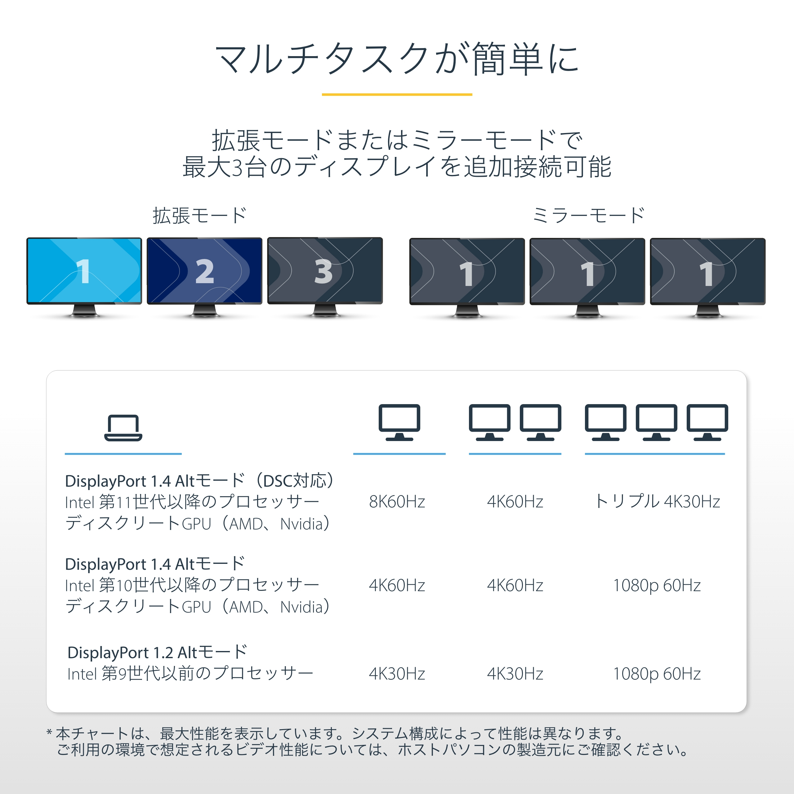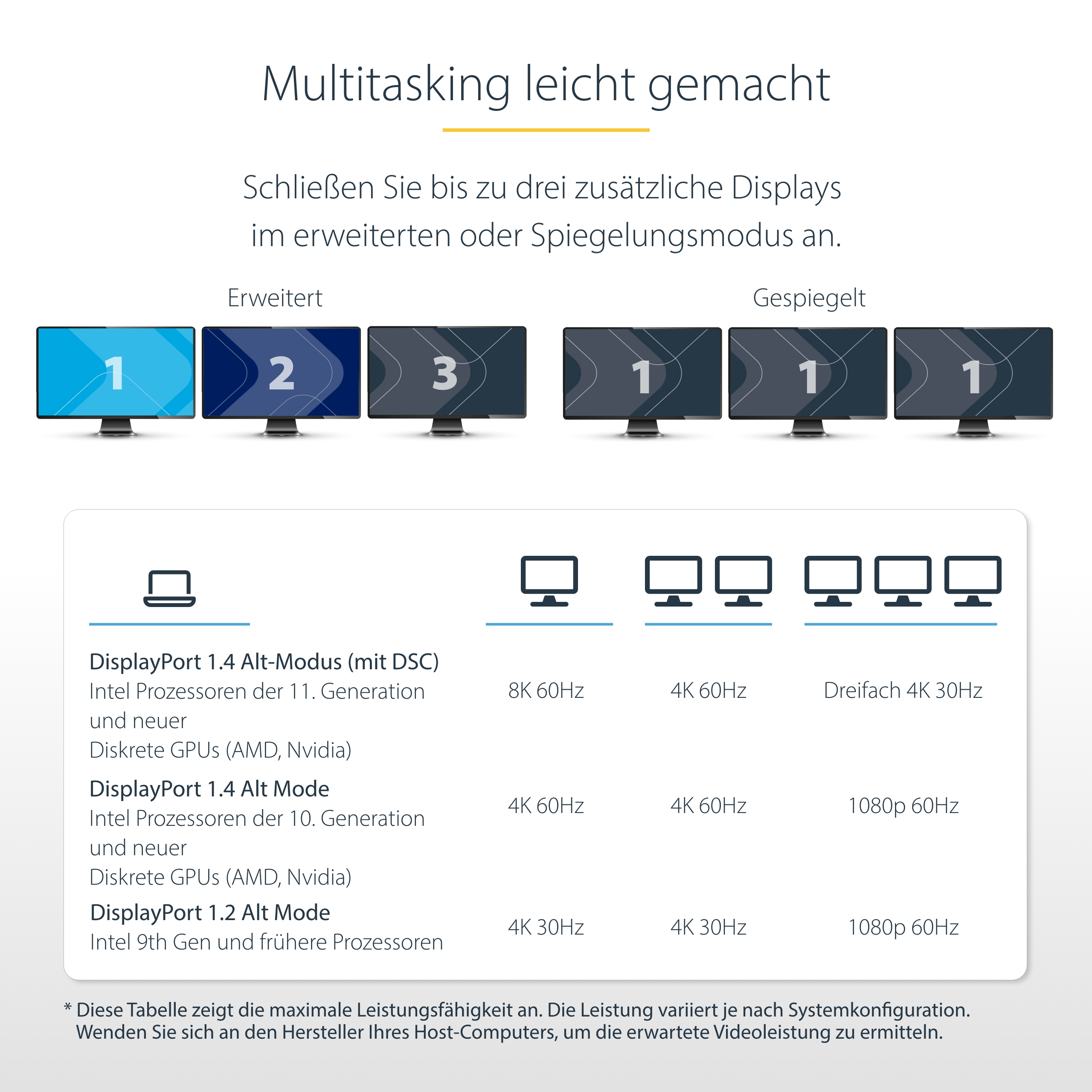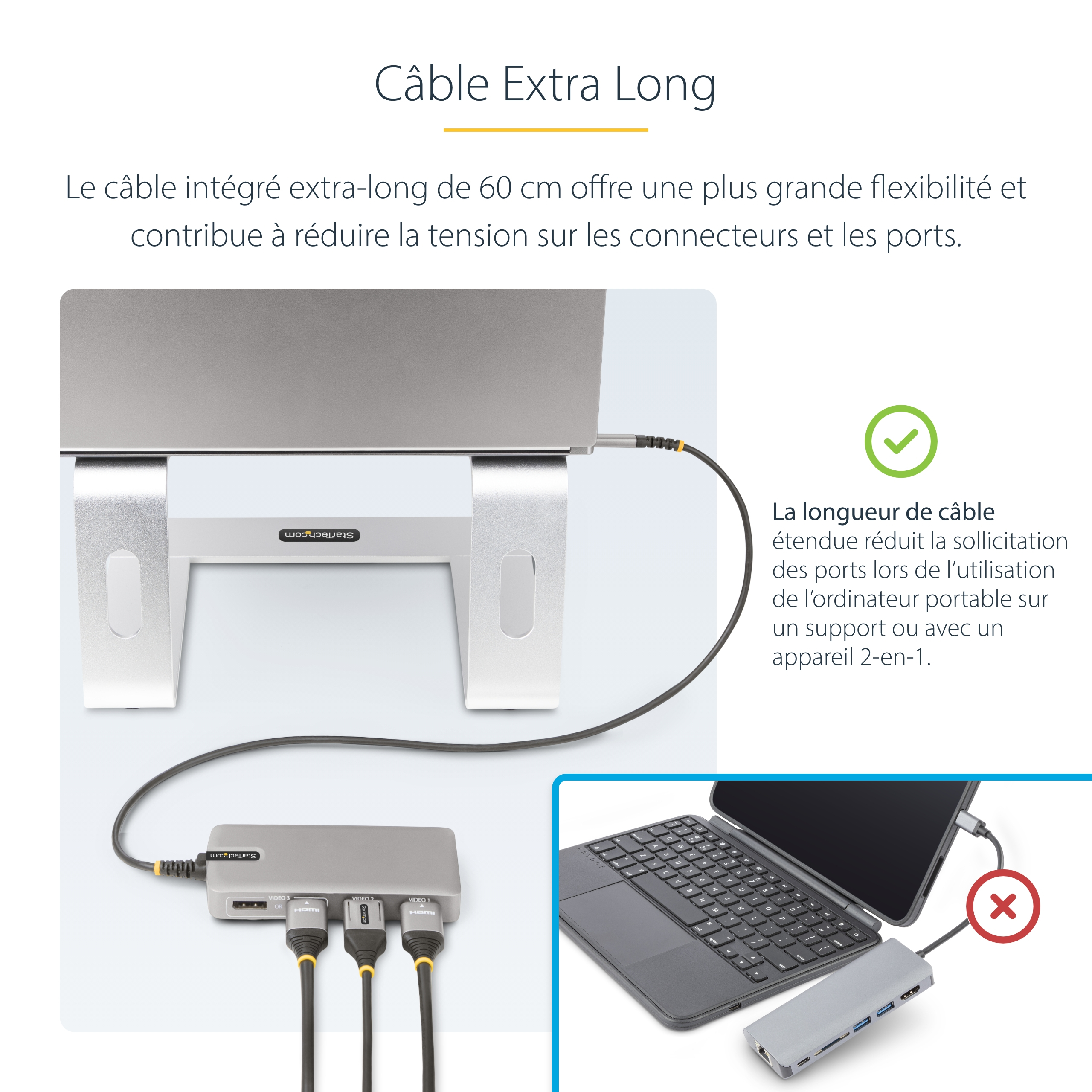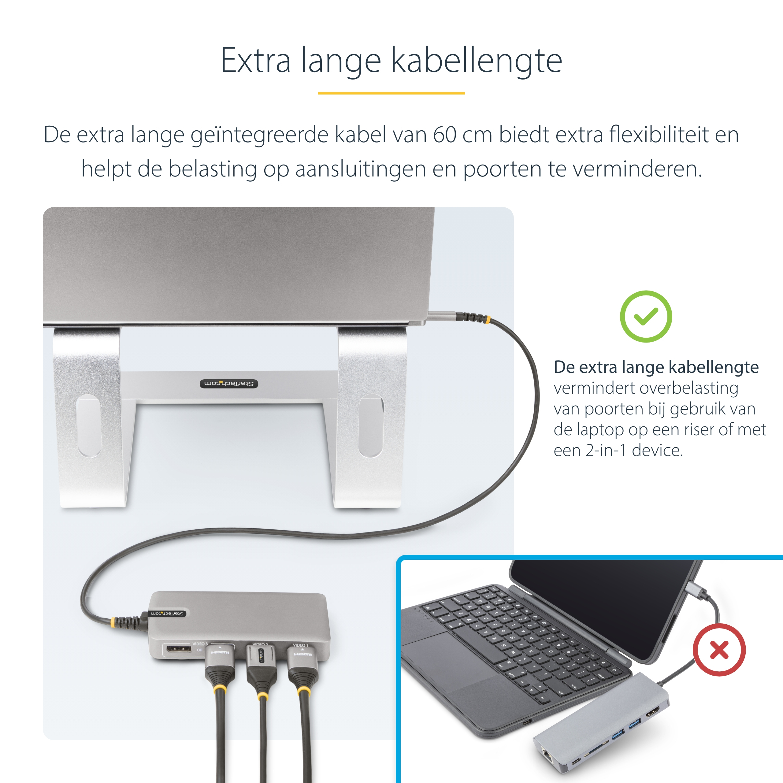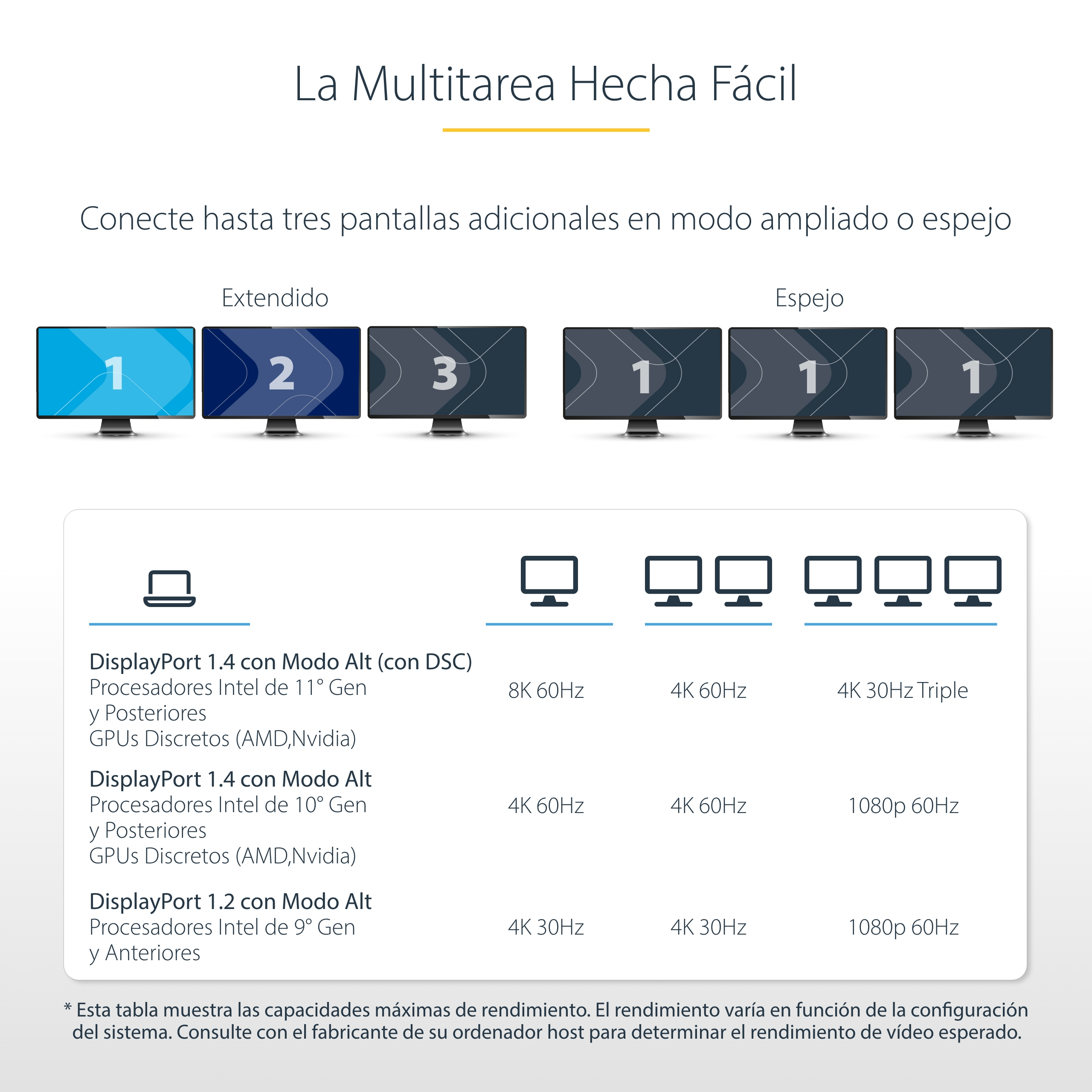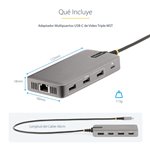 The StarTech.com 117B-USBC-MULTIPORT laptop dock/port replicator features a sleek, matte black finish that complements professional office settings. Its compact footprint fits easily on desks without overwhelming workspace. The sturdy build ensures durability for daily use, while intuitive port placement allows effortless cable management and quick access to connections.