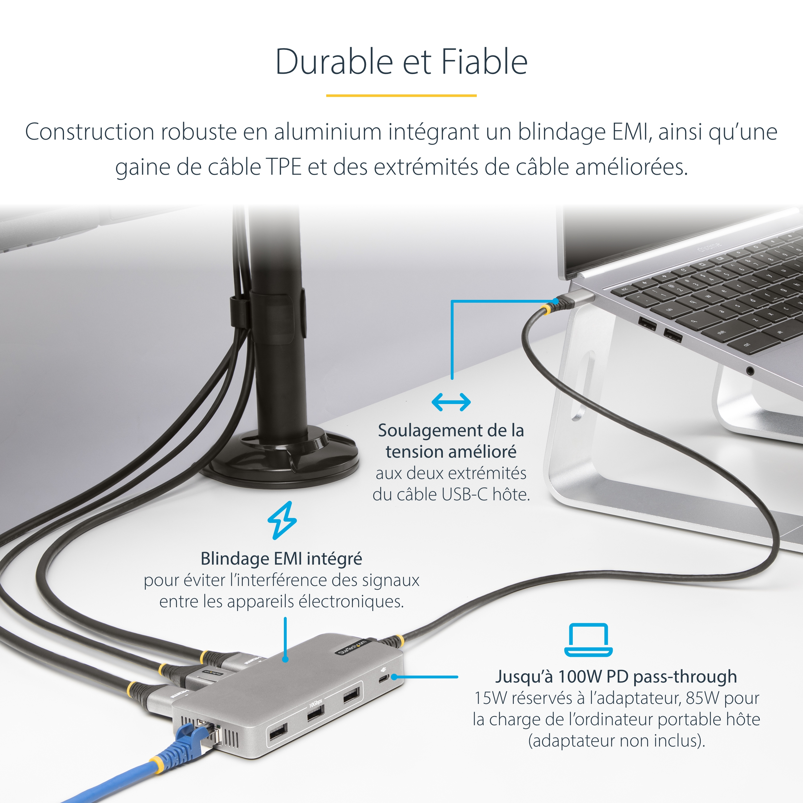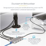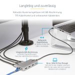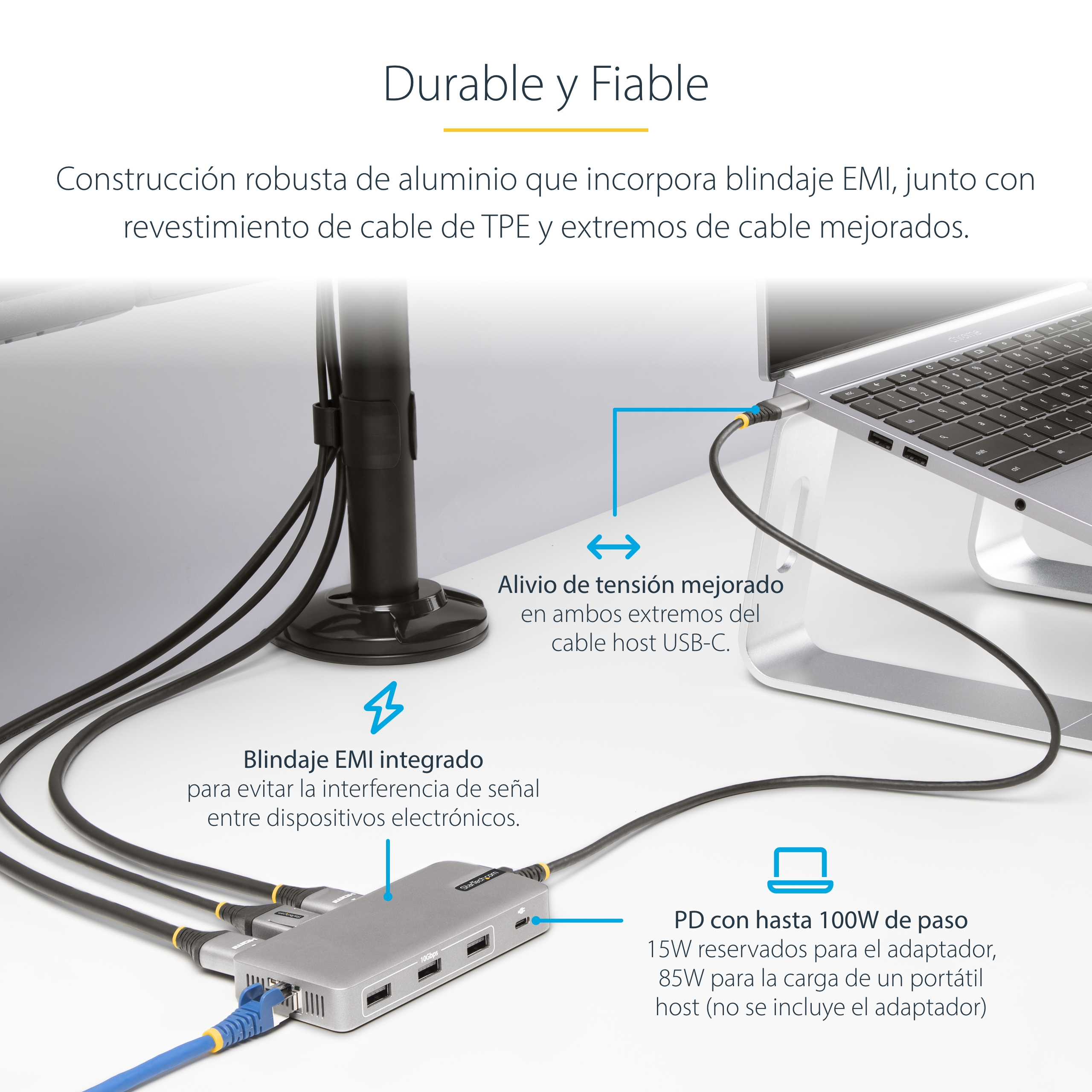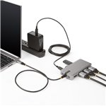 - Delivers up to 85W power delivery to charge laptops while connected, reducing the need for separate chargers.