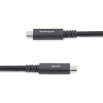 - The StarTech.com USB315C5C6 USB cable features a USB-C to USB-C connection, supporting Power Delivery for efficient charging up to 60W, reducing the need for multiple chargers.
