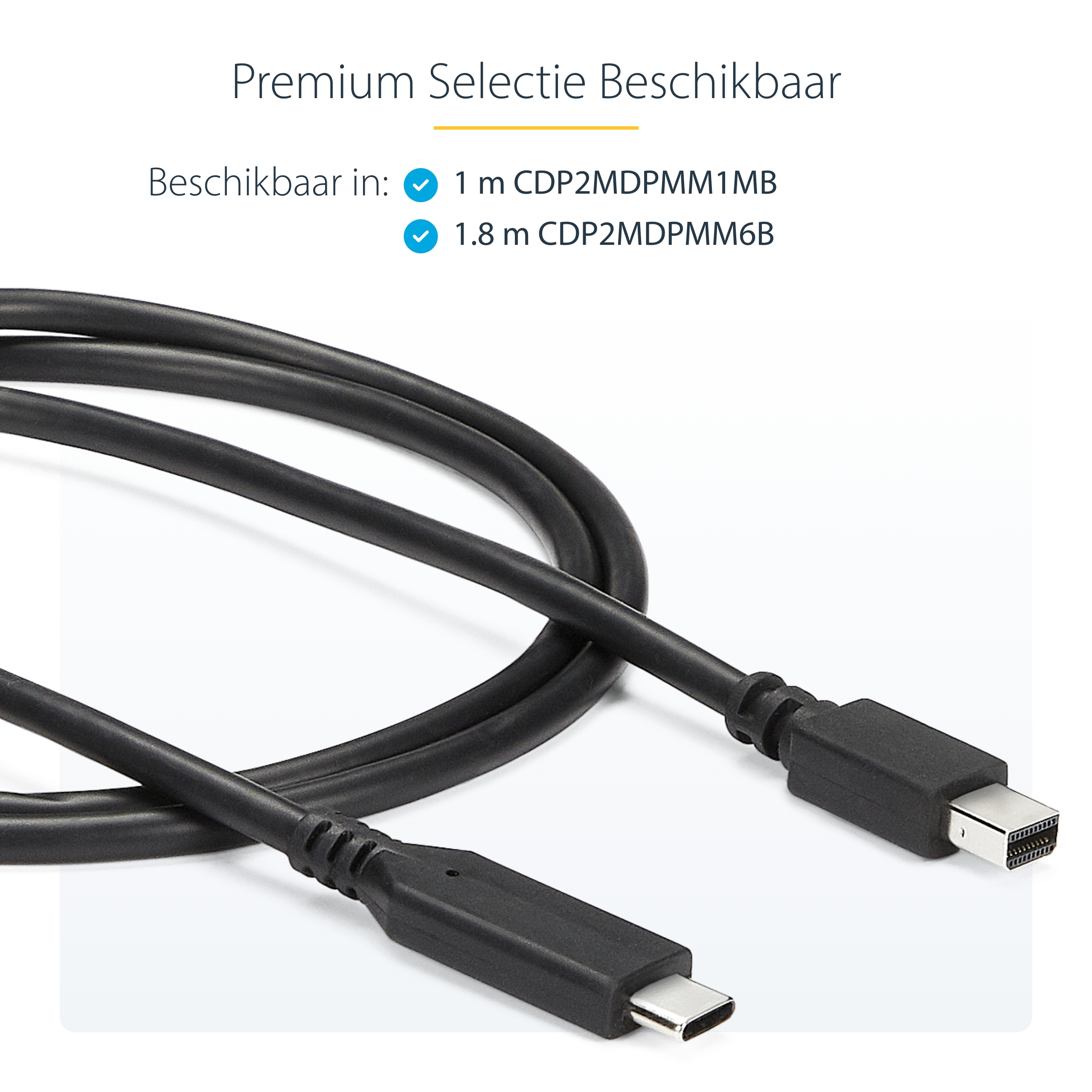 The StarTech.com CDP2MDPMM6B video cable adapter features a sleek, minimalist design with a matte black finish that blends seamlessly into professional environments. Its compact form factor makes it highly portable, fitting easily into laptop bags or workstation drawers. The sturdy connectors provide a secure fit, preventing accidental disconnections during critical business operations. Overall, it combines functionality with a professional aesthetic suitable for any modern workplace.