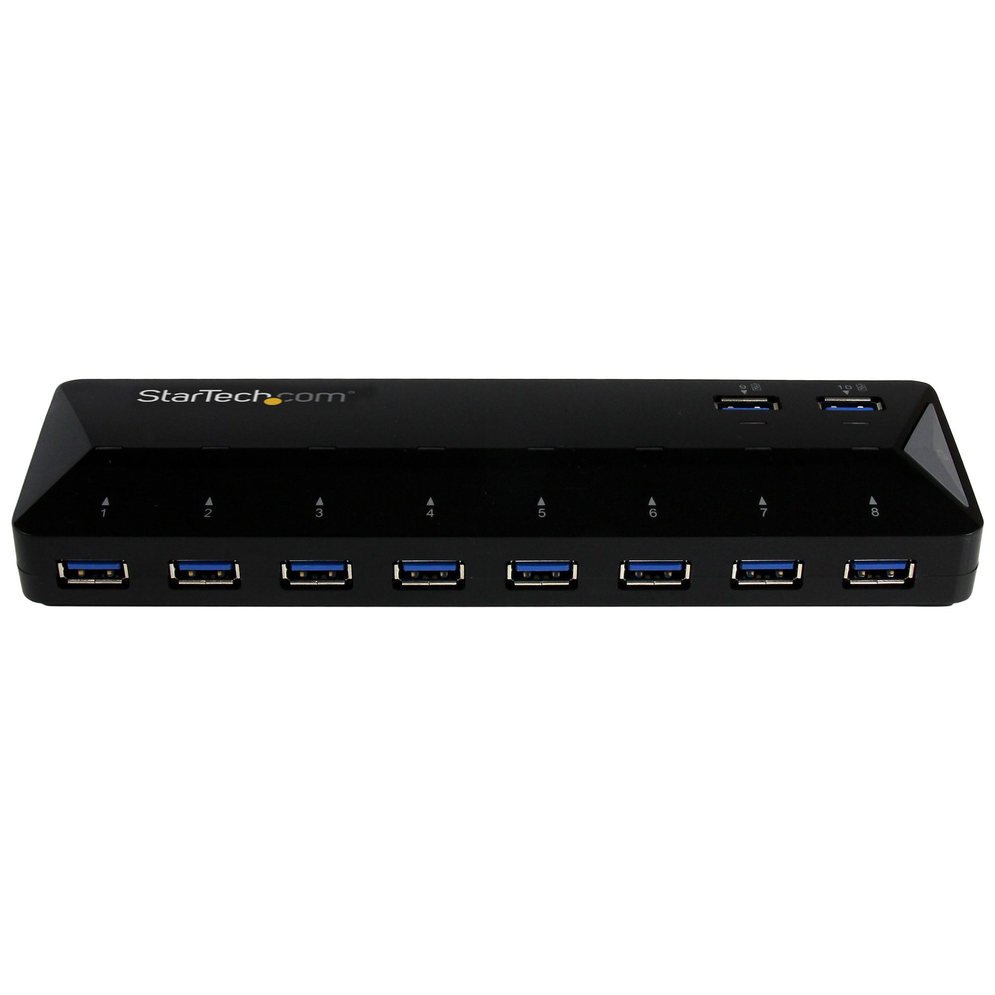 The StarTech.com ST103008U2C interface hub boasts a sleek, minimalist design with a sturdy casing that fits neatly on any desk or workstation. Its lightweight form factor makes it highly portable, perfect for mobile professionals. The intuitive layout of ports ensures easy access and cable management, contributing to a clutter-free workspace.