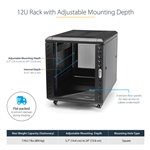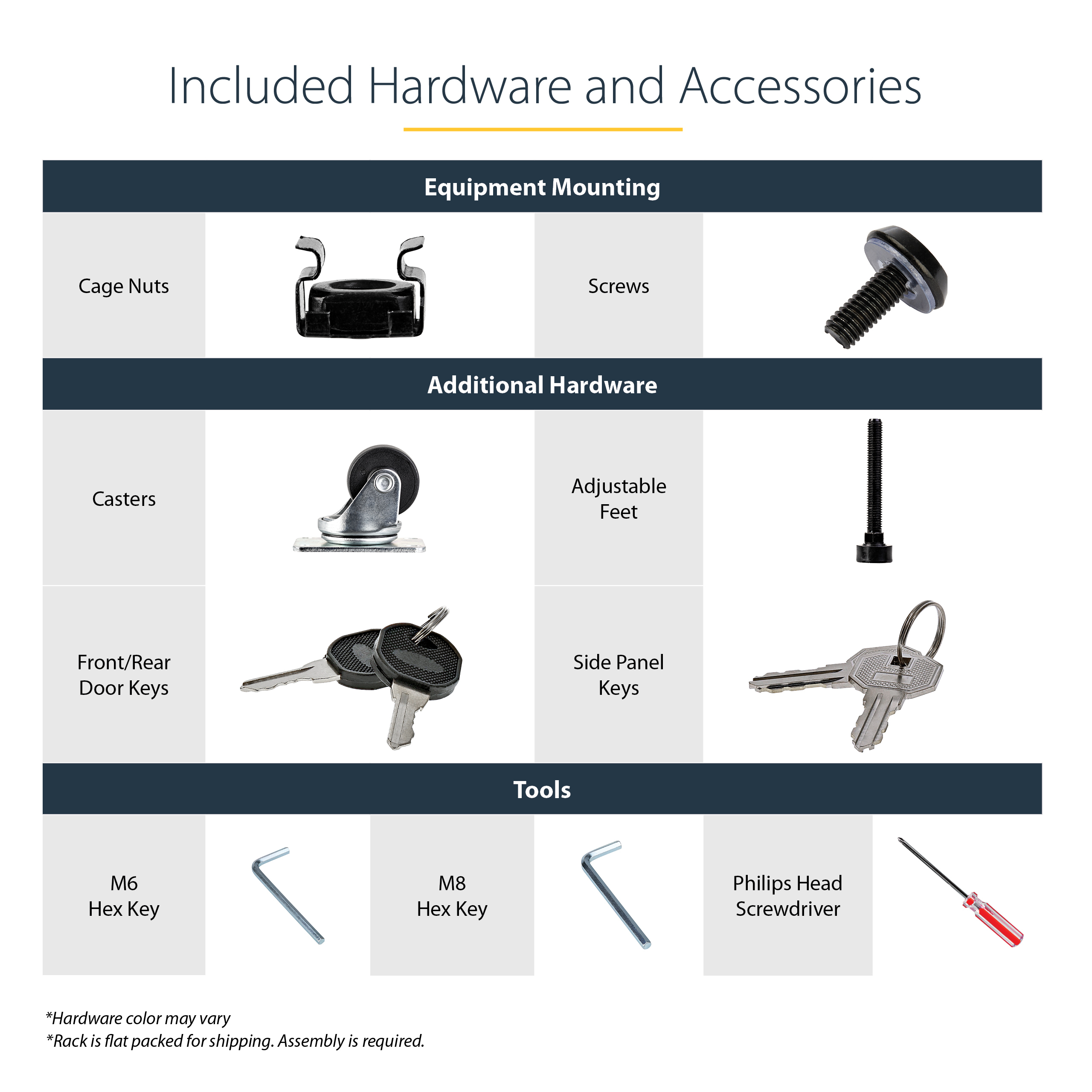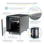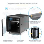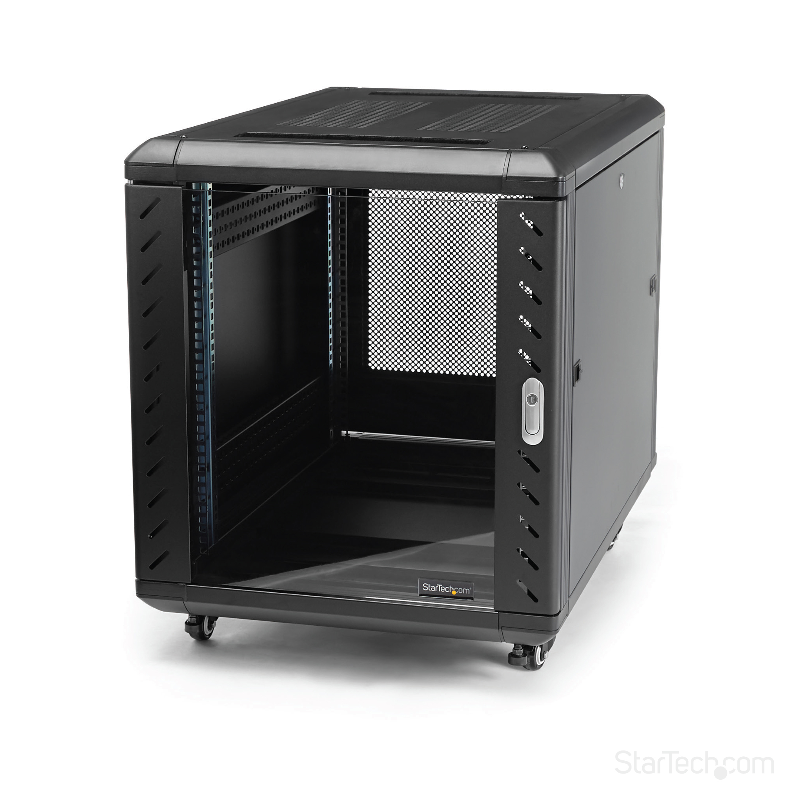 - The StarTech.com RK1236BKF rack cabinet supports standard 19-inch rack equipment, aligning with industry norms for seamless integration.