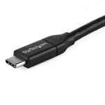 The StarTech.com USB2C5C1M USB cable features a sleek, minimalist design with reinforced connectors for added durability. Its flexible yet sturdy cable jacket resists tangling and wear, making it suitable for both office desks and mobile setups. The neutral black finish complements any professional environment, reflecting a balance of form and function.