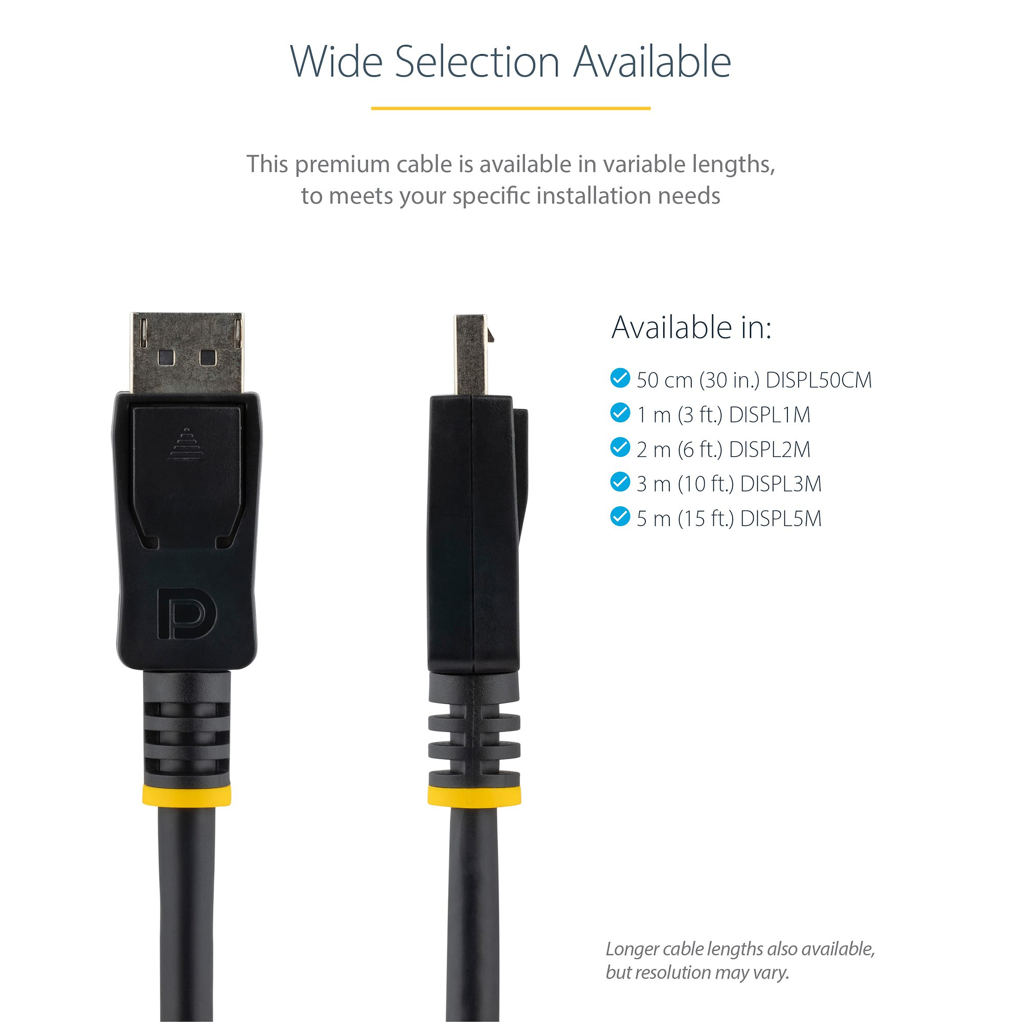 - The StarTech.com DISPL1M DisplayPort cable supports DisplayPort 1.2 standards, enabling high bandwidth for smooth video and audio transmission.