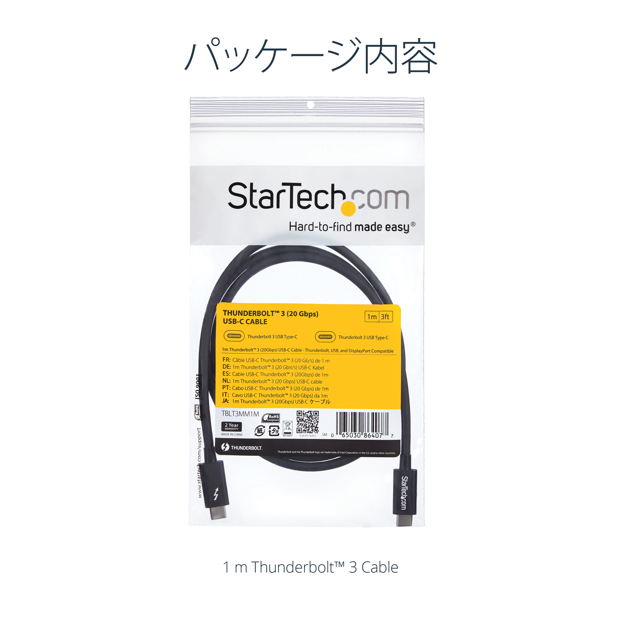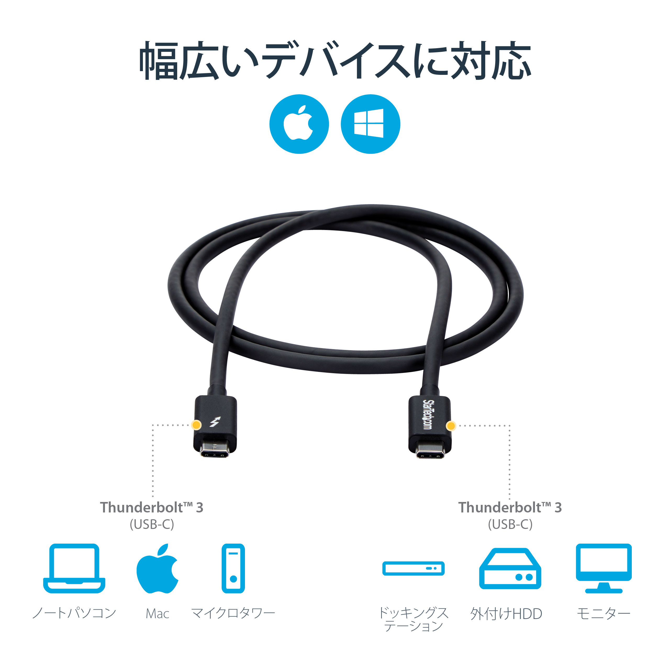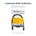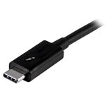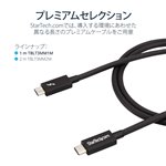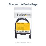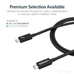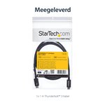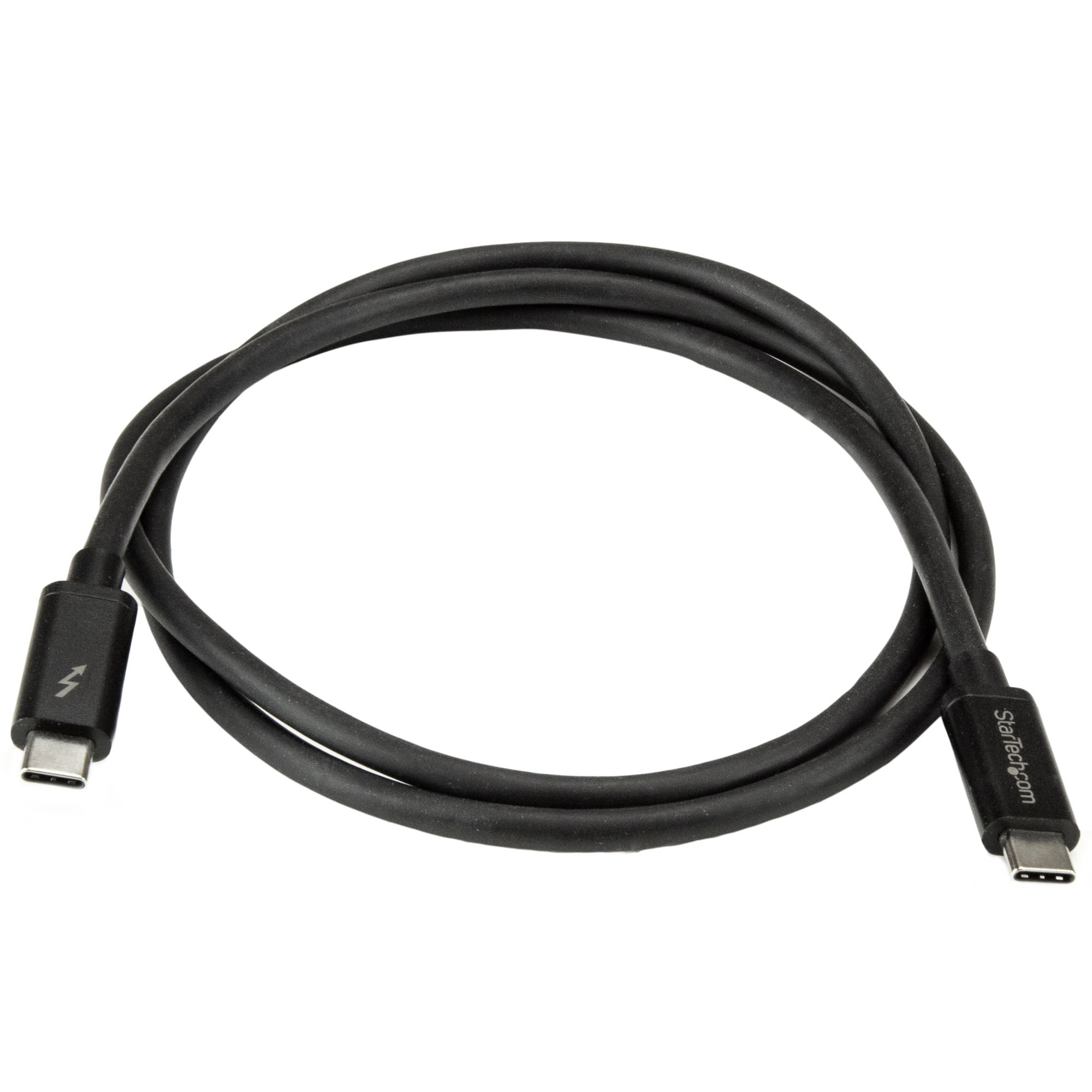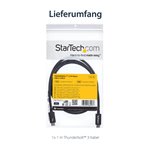 The StarTech.com TBLT3MM1M Thunderbolt cable features a sleek, professional design with a matte black finish that complements modern office aesthetics. Its flexible yet robust cable jacket resists tangling and wear, ensuring durability in high-usage environments. The compact connectors provide a secure fit without adding bulk, making it an unobtrusive addition to any workstation.