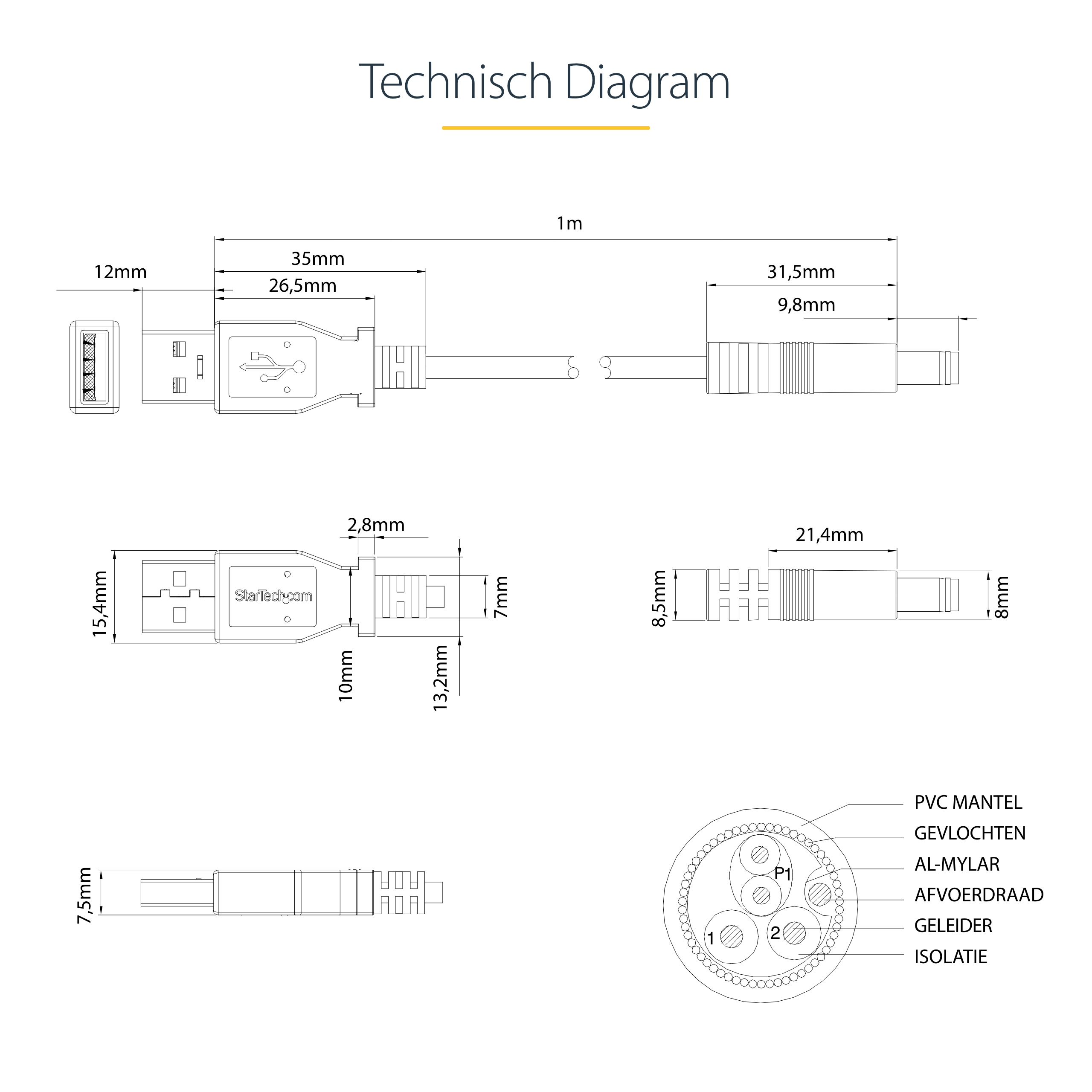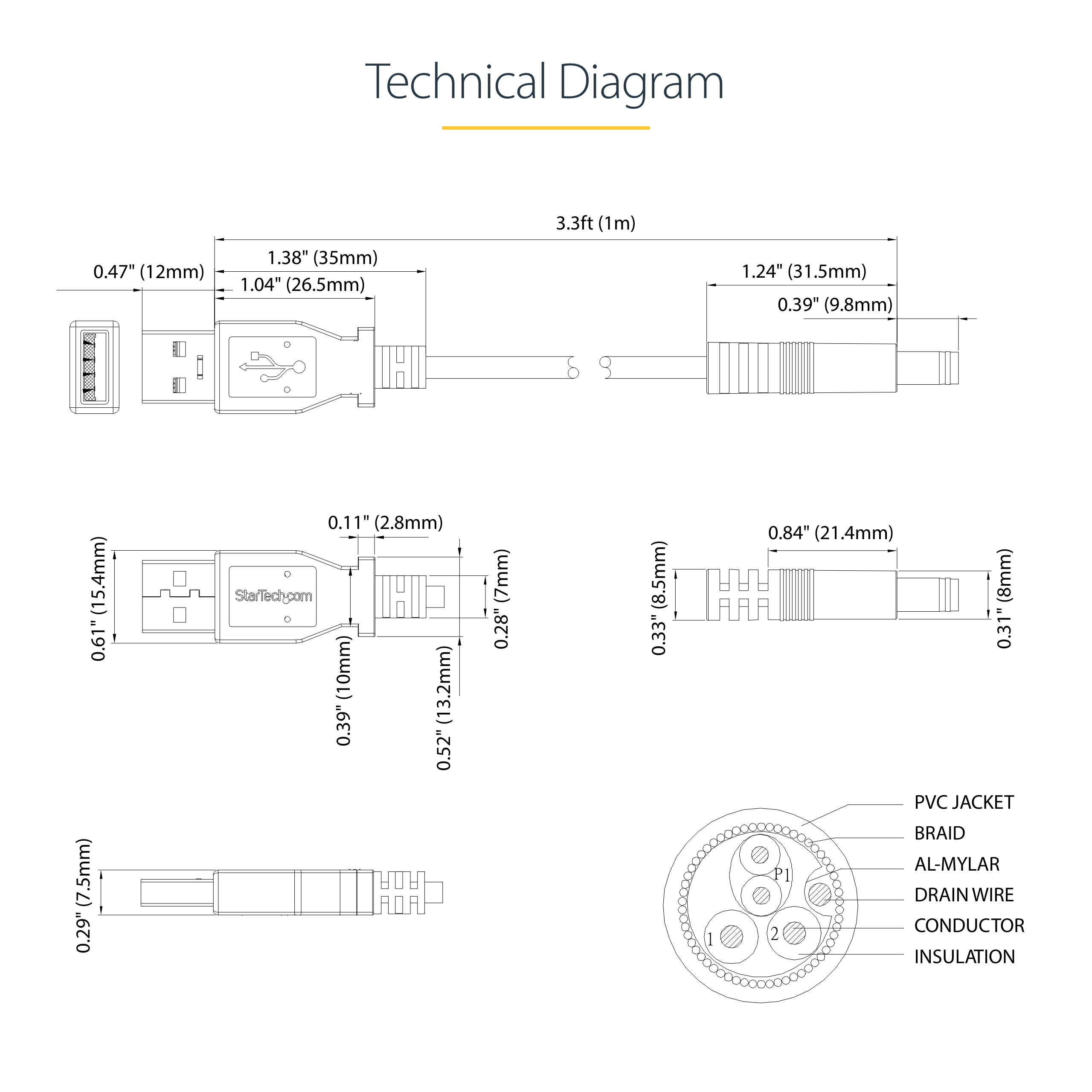 - The StarTech.com USB2TYPEN1M power cable supports up to 60W power delivery, ideal for charging laptops, monitors, and peripherals used in modern workplaces.