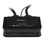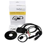 The StarTech.com SV211HDUA KVM switch features a sleek, compact chassis with a professional matte finish that complements modern office environments. Its intuitive front-panel buttons and LED indicators provide clear status feedback, enhancing user experience. Designed for durability, it fits neatly into IT racks or desktop setups without occupying excessive space.