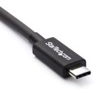 The StarTech.com TBLT3MM2M Thunderbolt cable features a sleek, professional design with robust connectors that ensure a secure fit. Its flexible yet sturdy cable jacket resists wear and tear, making it suitable for frequent use in dynamic office environments. The understated black finish complements modern tech setups, blending functionality with a clean aesthetic.