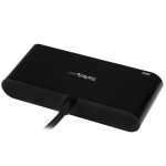 The StarTech.com HB30C3AGEPD laptop dock/port replicator features a sleek, compact design that fits neatly on any desk without occupying excessive space. Its matte black finish complements professional office environments, while the sturdy chassis ensures durability. The intuitive port layout allows easy access and cable management, contributing to a clean and efficient workspace.