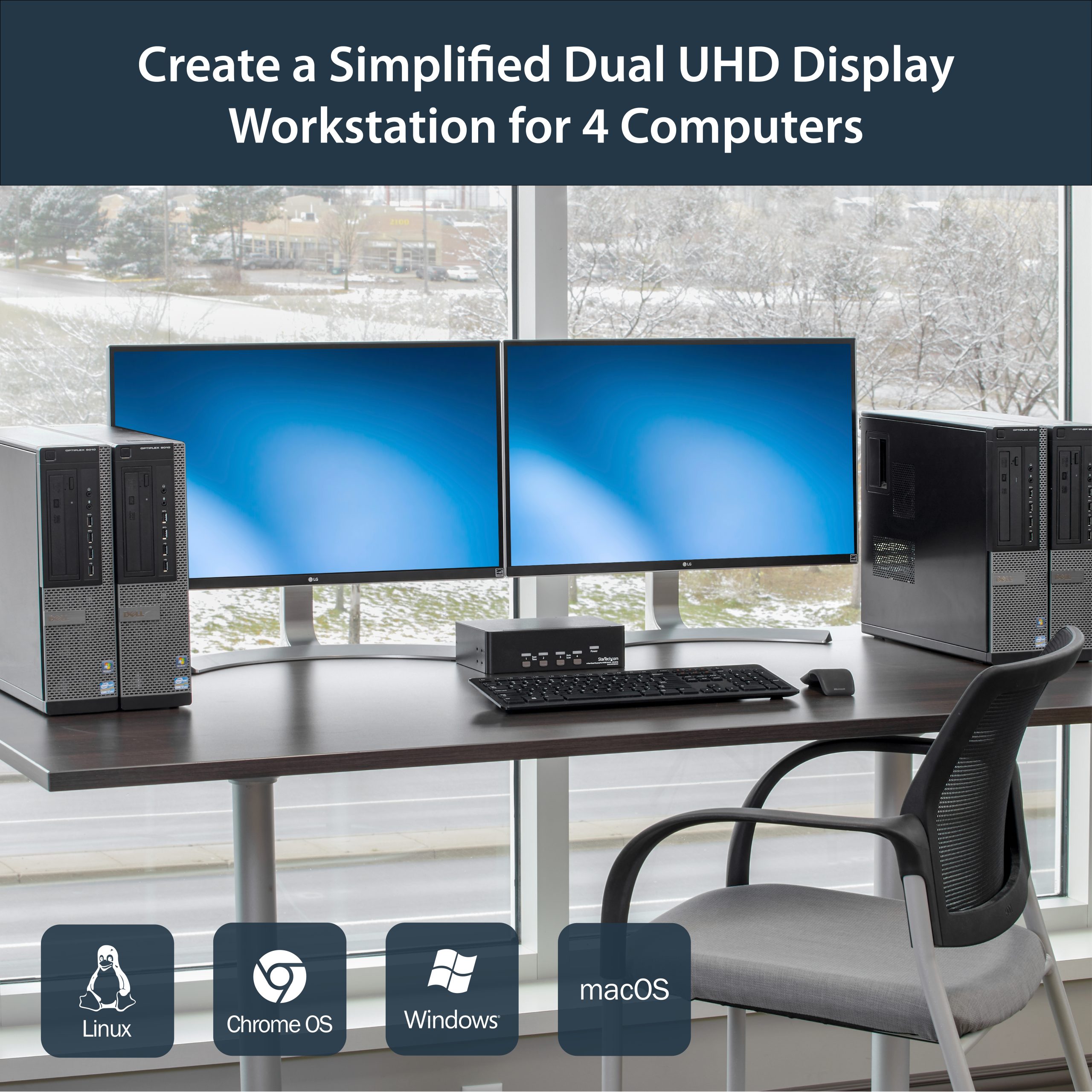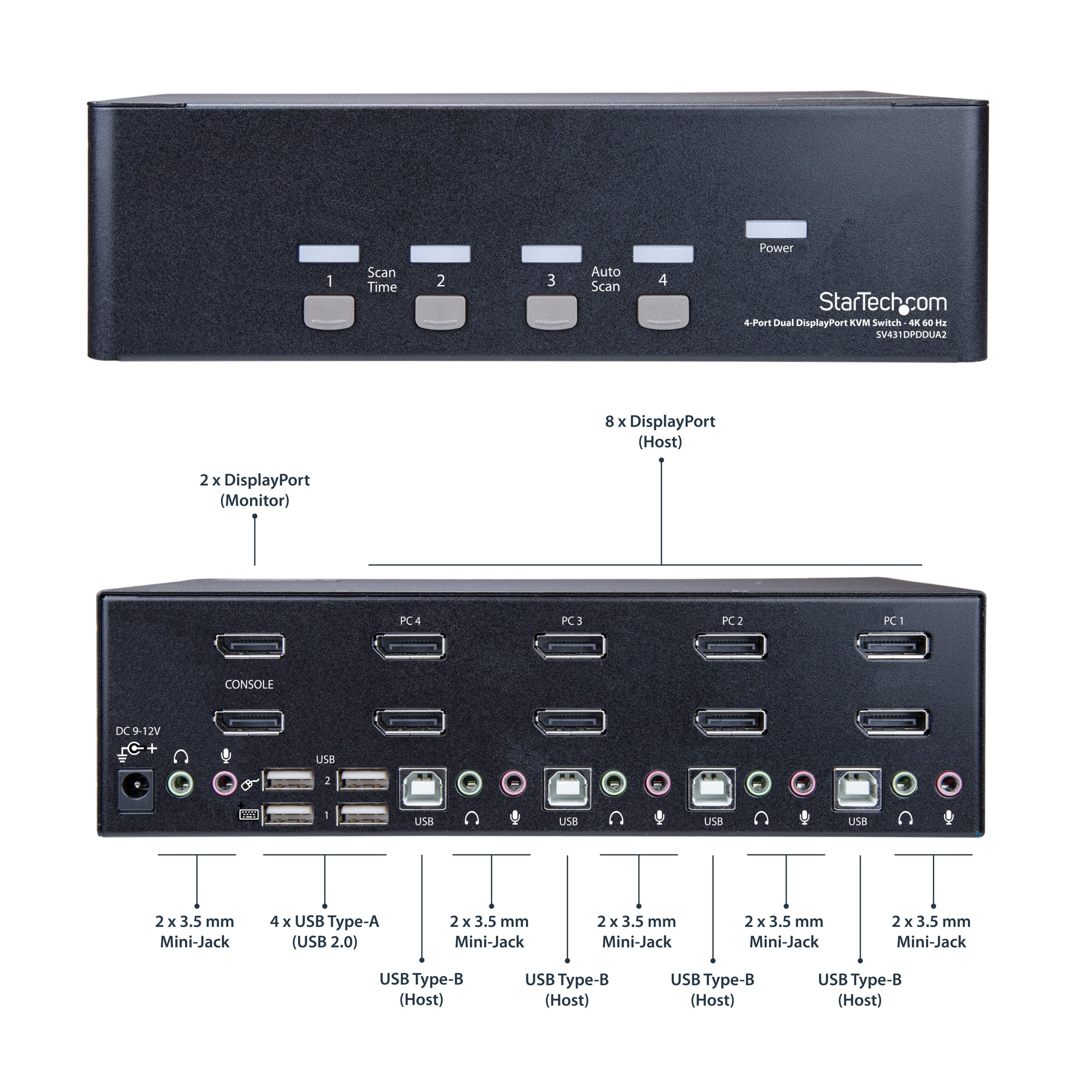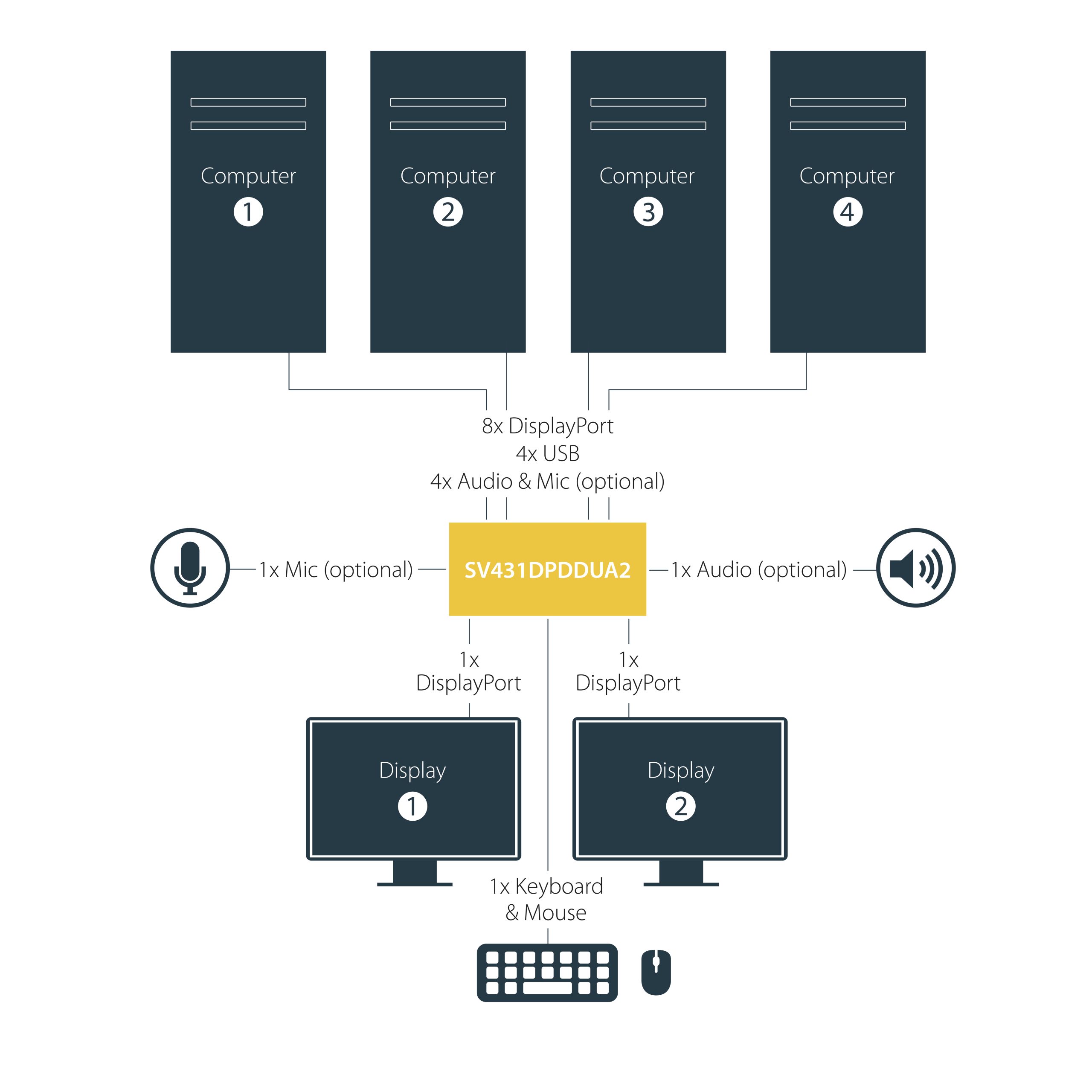 - Supports 4 dual-monitor computers with DisplayPort connections, enabling seamless switching and multitasking.