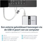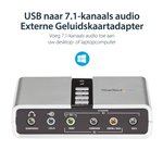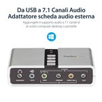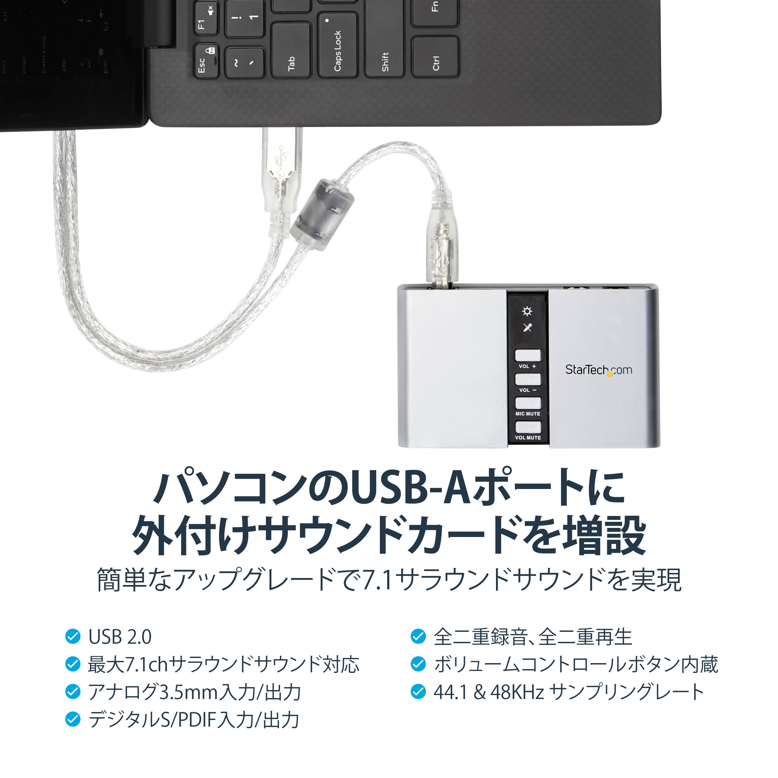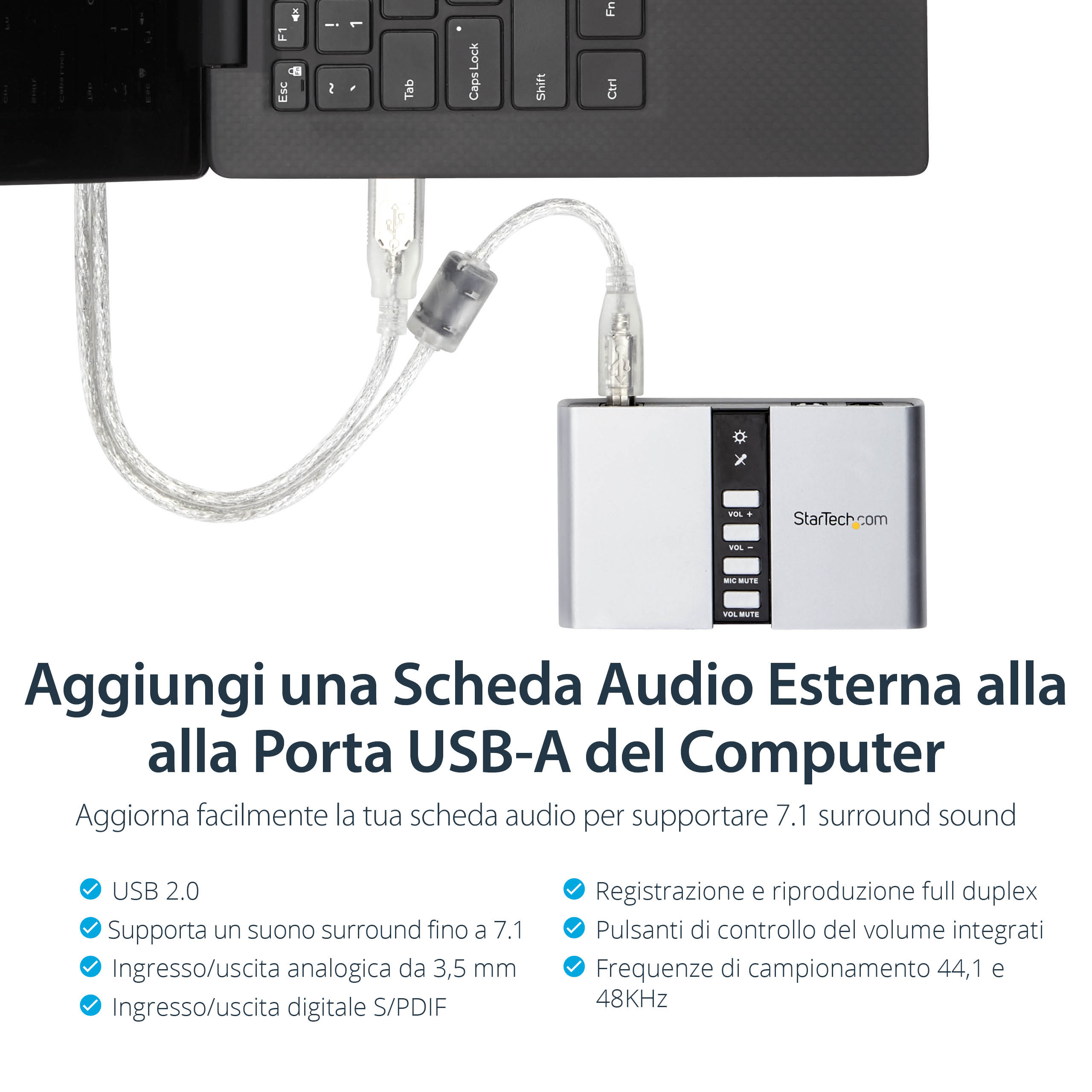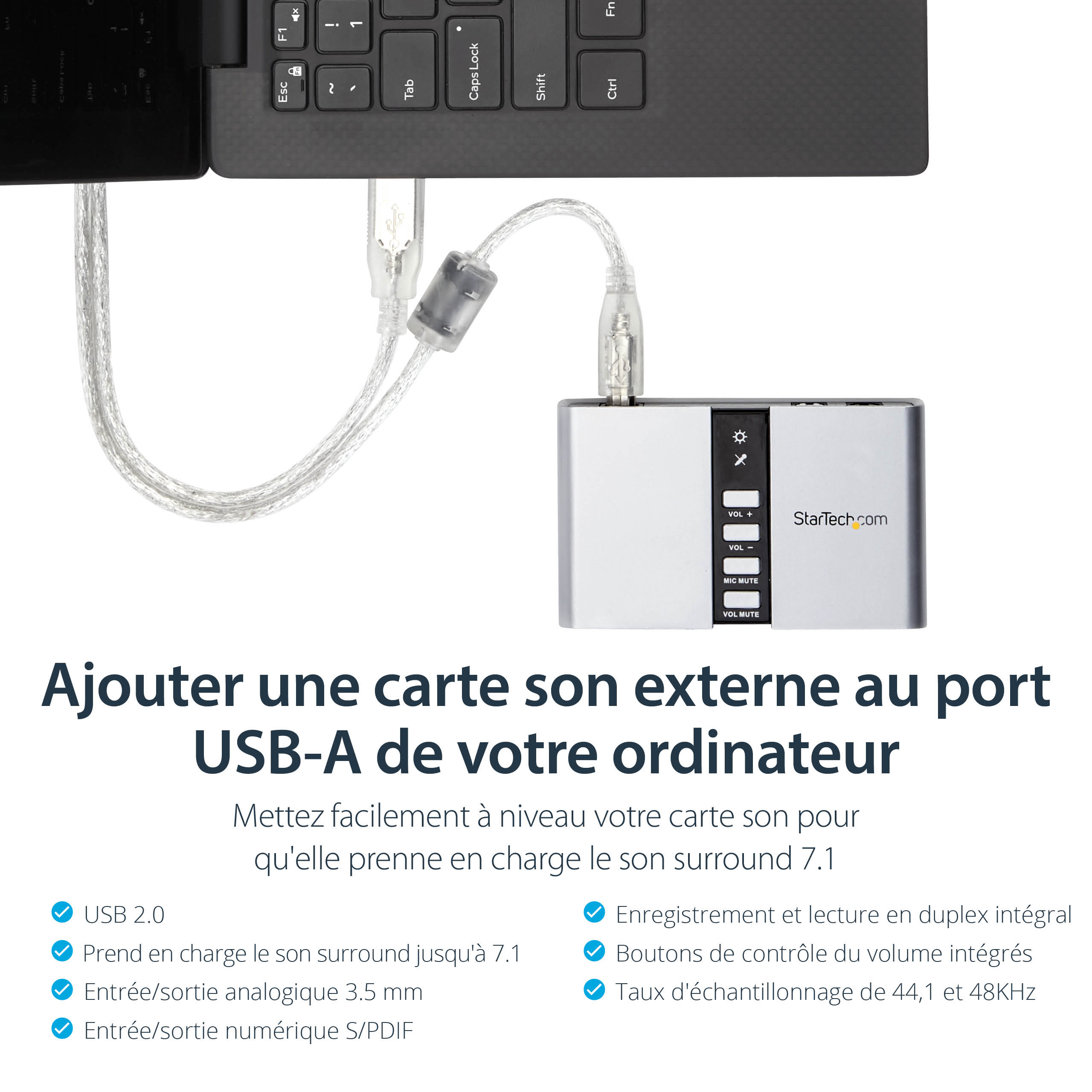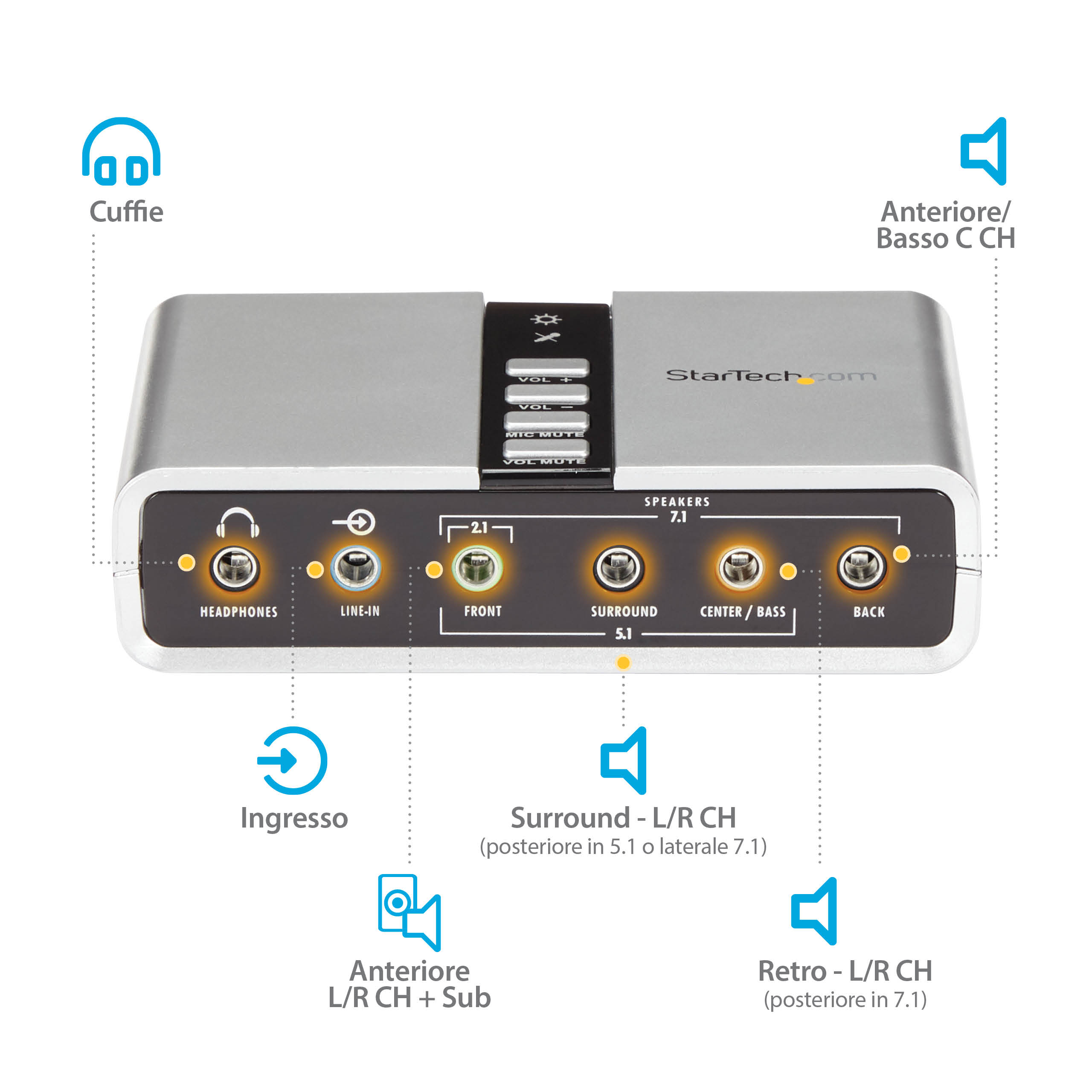 - The StarTech.com ICUSBAUDIO7D audio card supports 7.1 surround sound, enhancing multimedia presentations and virtual meetings.