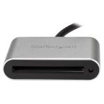 The StarTech.com CFASTRWU3 card reader features a sleek, compact design with a matte black finish that complements modern office setups. Its lightweight form factor makes it highly portable, while the sturdy casing provides durability for everyday use. The intuitive layout of card slots ensures easy access and quick card insertion, enhancing user experience in busy work environments.
