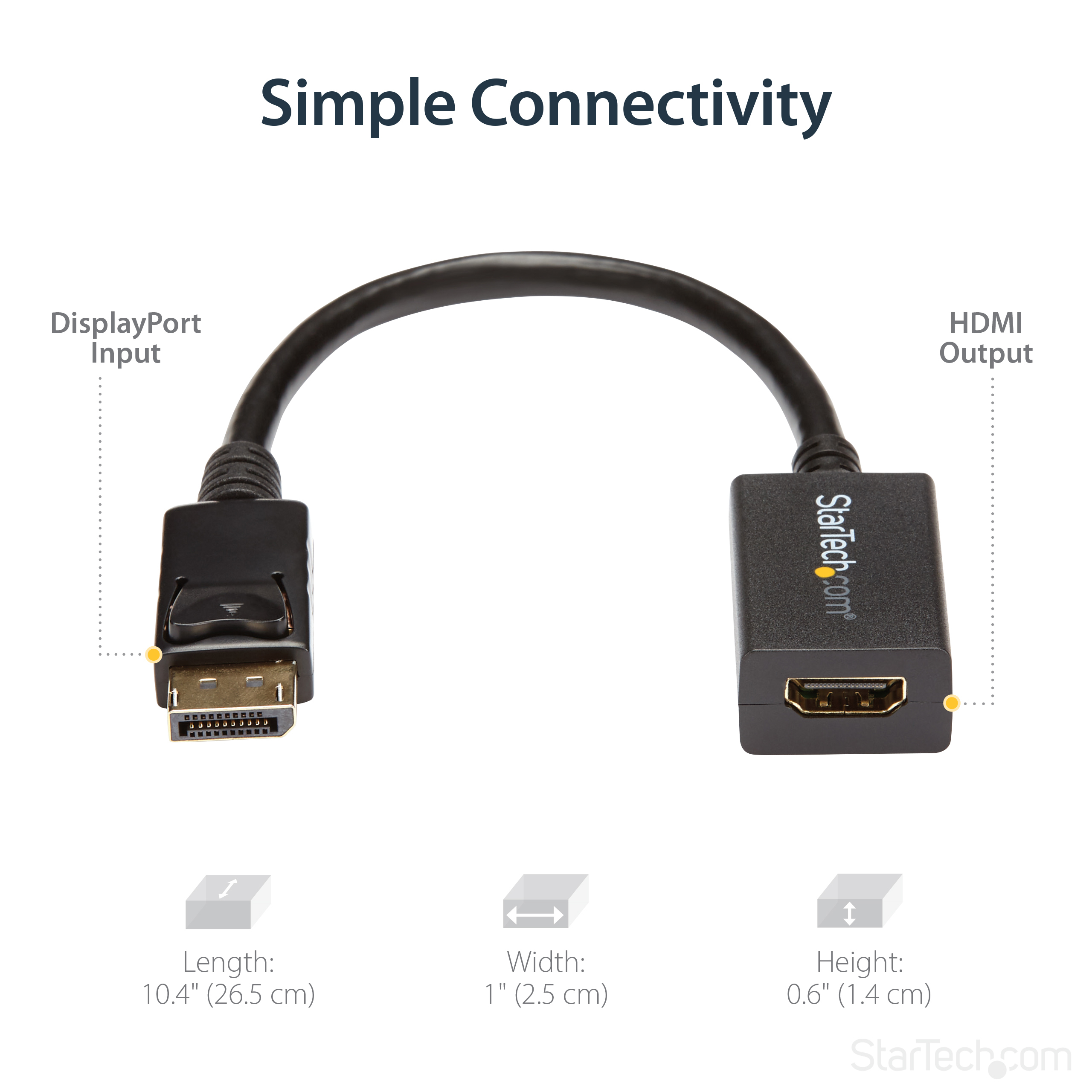 - Requires a DisplayPort output on the source device and an HDMI input on the display for compatibility.