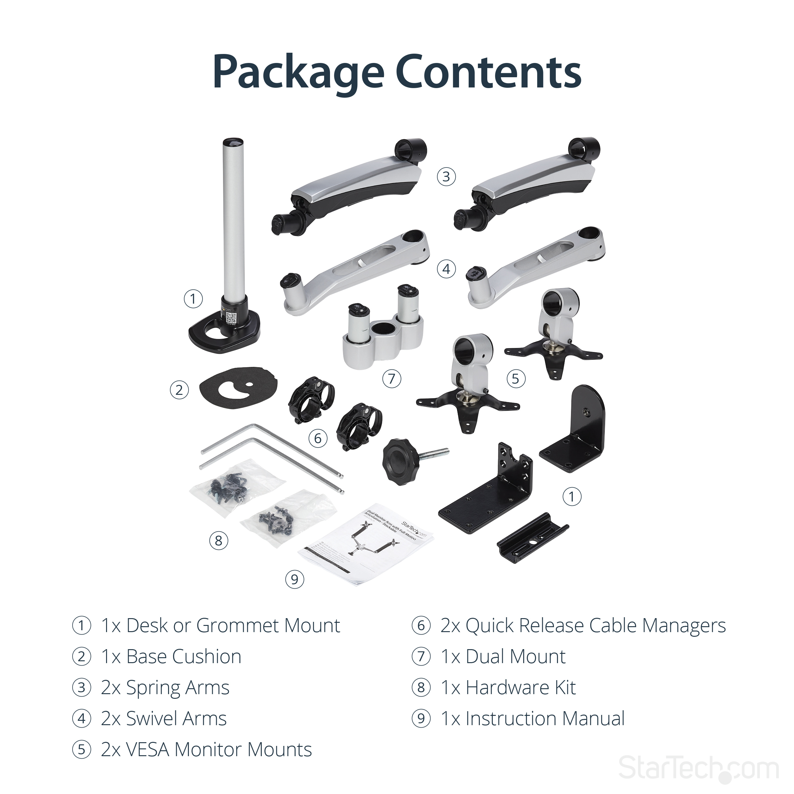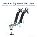 - The StarTech.com ARMDUAL30 monitor mount / stand enhances workspace ergonomics by allowing users to position monitors at eye level, reducing neck and eye strain.