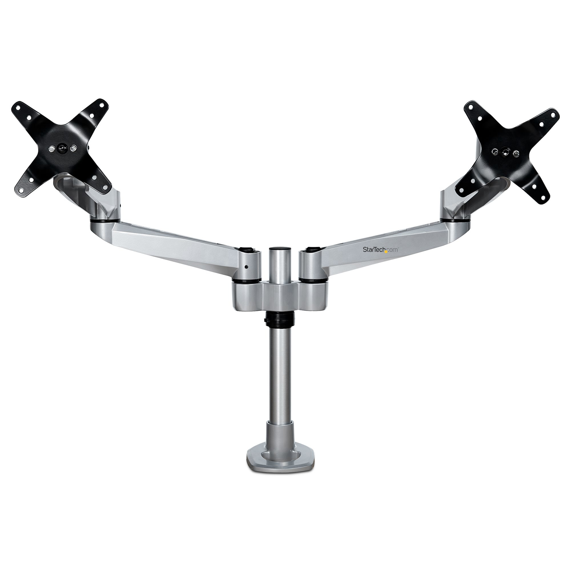 - The StarTech.com ARMDUALPS monitor mount / stand features fully adjustable arms with tilt, swivel, and rotation capabilities, allowing users to customise their viewing angles for maximum comfort.