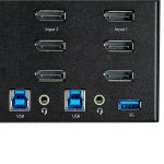 The StarTech.com SV231TDPU34K KVM switch features a sleek, professional design with a compact footprint that fits neatly into any office setup. Its sturdy metal chassis ensures durability, while intuitive LED indicators provide clear status updates. The minimalist aesthetic aligns well with contemporary workspaces, offering both functionality and style.