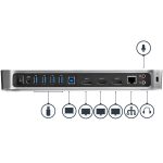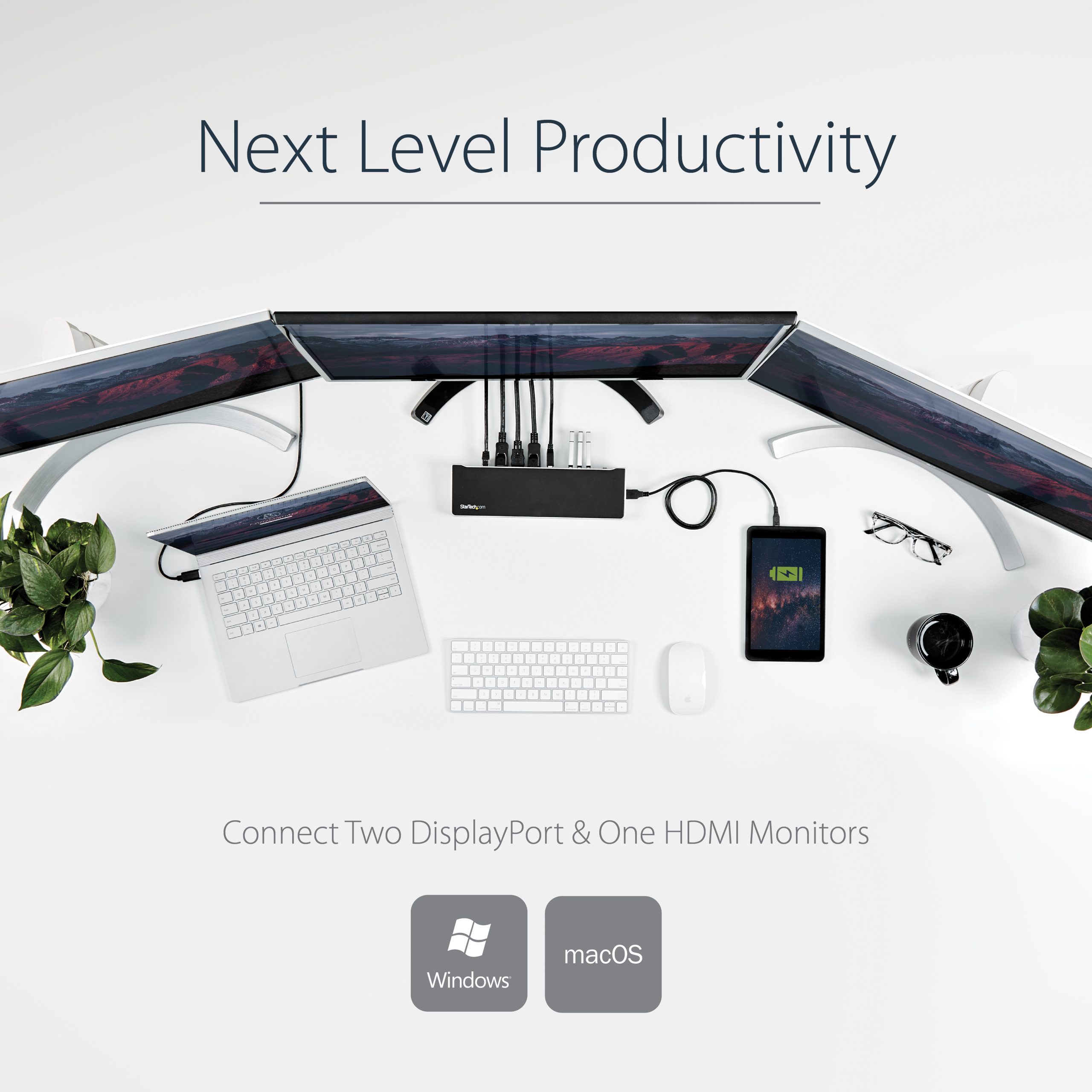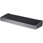 The StarTech.com USB3DOCKH2DP laptop dock/port replicator features a sleek, matte black finish that complements any professional workspace. Its compact footprint allows it to fit comfortably on desks without overwhelming the area. The sturdy build quality ensures durability for daily use, while the intuitive port layout provides easy access to all connections. Overall, it balances functionality with a modern aesthetic suitable for any office environment.