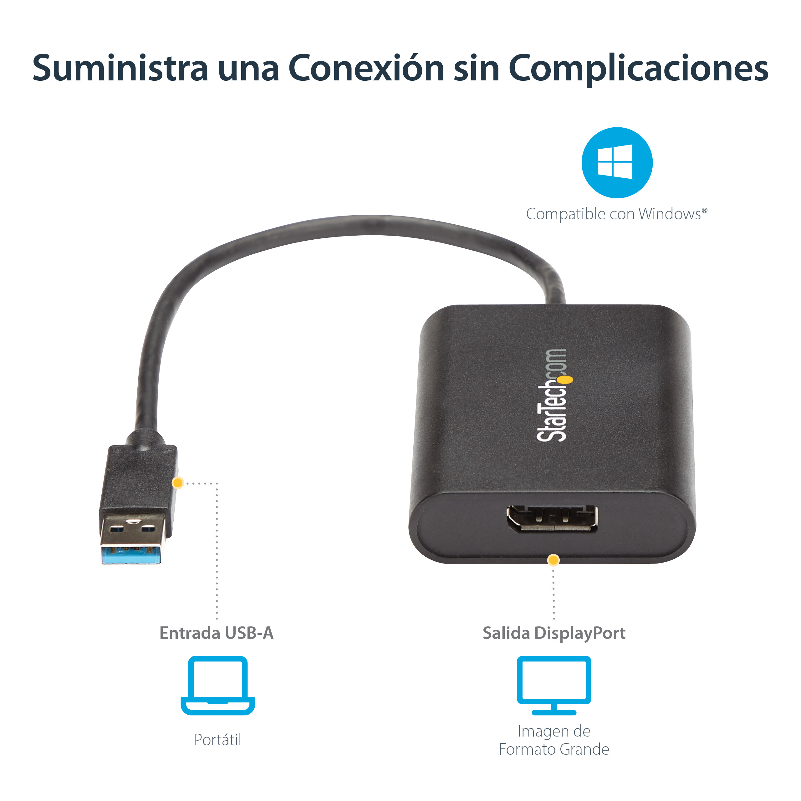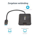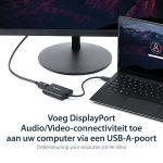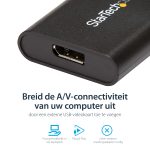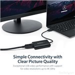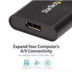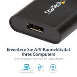 The StarTech.com USB32DPES2 USB graphics adapter features a sleek, compact design that fits easily into any workspace without clutter. Its lightweight build makes it highly portable for on-the-go professionals. The robust casing ensures durability, while the intuitive plug-and-play setup reflects a user-friendly approach tailored for busy IT teams.