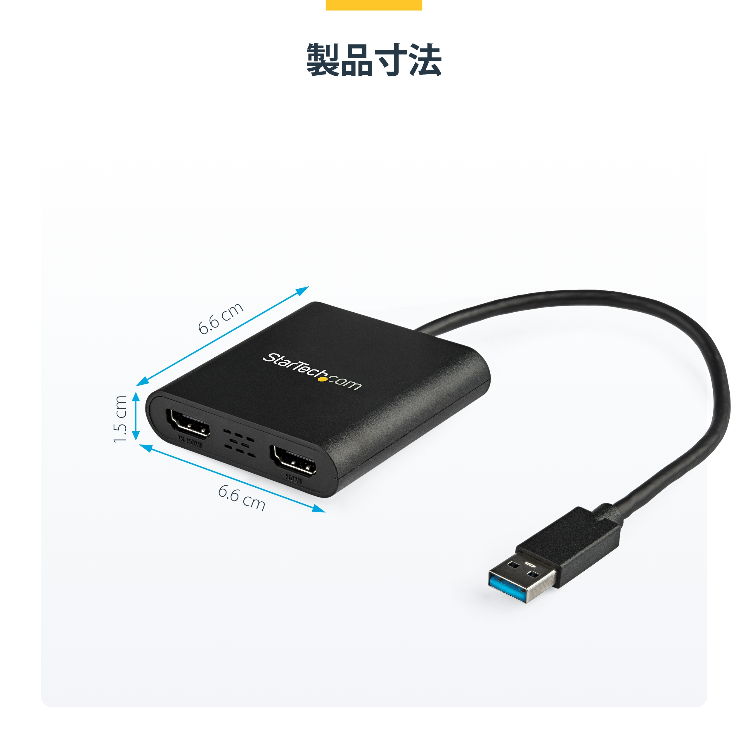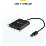 The StarTech.com USB32HD2 USB graphics adapter features a sleek, compact design that fits easily into any workspace without clutter. Its lightweight build makes it highly portable for professionals on the move. The durable casing ensures longevity, while the simple USB interface offers a clean, cable-managed setup that complements modern office aesthetics.