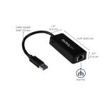 The StarTech.com USB31000SPTB network card features a sleek, compact form factor that fits effortlessly into any workspace. Its durable casing protects internal components while maintaining a professional aesthetic suitable for corporate environments. The lightweight design makes it easy to transport between locations, supporting flexible hybrid work setups.