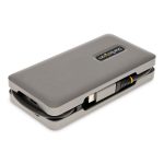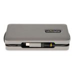 The StarTech.com DKT31CVHPD3 laptop dock/port replicator features a sleek, compact design that fits neatly on any desk without occupying excessive space. Its matte black finish complements professional office environments, while the sturdy chassis ensures durability for everyday use. The intuitive port layout allows easy access to all connections, enhancing user convenience and reducing cable management challenges.