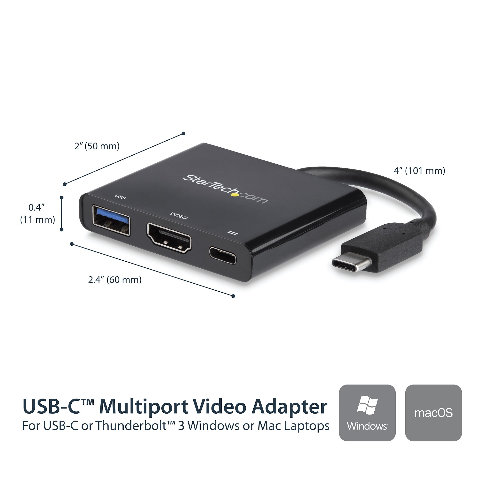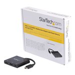 The StarTech.com CDP2HDUACP laptop dock/port replicator features a sleek, matte black finish that complements modern office aesthetics. Its compact footprint allows it to fit comfortably on desks without occupying excessive space. The sturdy build quality reflects its durability for daily business use, while intuitive port placement ensures easy access and cable management.