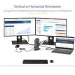 The StarTech.com DK30A2DHU laptop dock/port replicator features a sleek, matte black finish that complements professional office environments. Its compact footprint ensures it fits comfortably on desks without occupying excessive space. The sturdy build quality reflects durability, making it suitable for daily use in busy workspaces. Thoughtful port placement enhances cable management and accessibility.