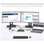 - The dock supports USB 3.1 Gen 2 for high-speed data transfer, ensuring rapid file sharing and peripheral responsiveness.