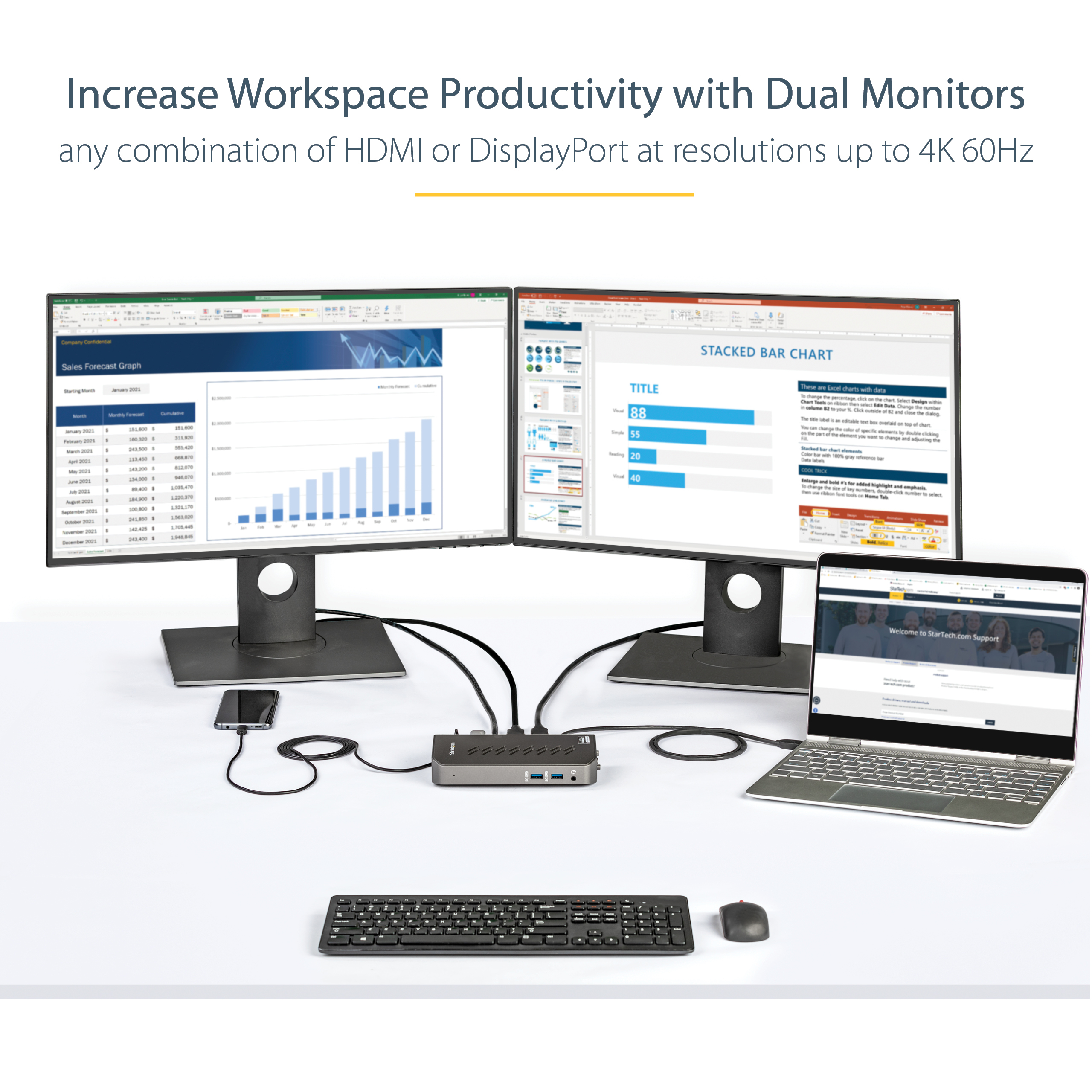 The StarTech.com DK30A2DHU laptop dock/port replicator SKU: DK30A2DHU is an essential tool for Australian businesses aiming to enhance hybrid work environments with seamless connectivity and productivity. Designed to support modern laptops, this dock simplifies workstation setups by expanding ports and enabling multiple display outputs. With TECHOM Systems local stock and nationwide delivery, Australian companies can quickly purchase this affordable solution to improve employee efficiency and reduce downtime.