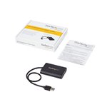 The StarTech.com USB32DP24K60 USB graphics adapter features a sleek, compact design that fits effortlessly into any workspace. Its lightweight build makes it highly portable, perfect for on-the-go professionals or flexible office setups. The robust casing ensures durability, while the minimalist aesthetic complements modern office environments.
