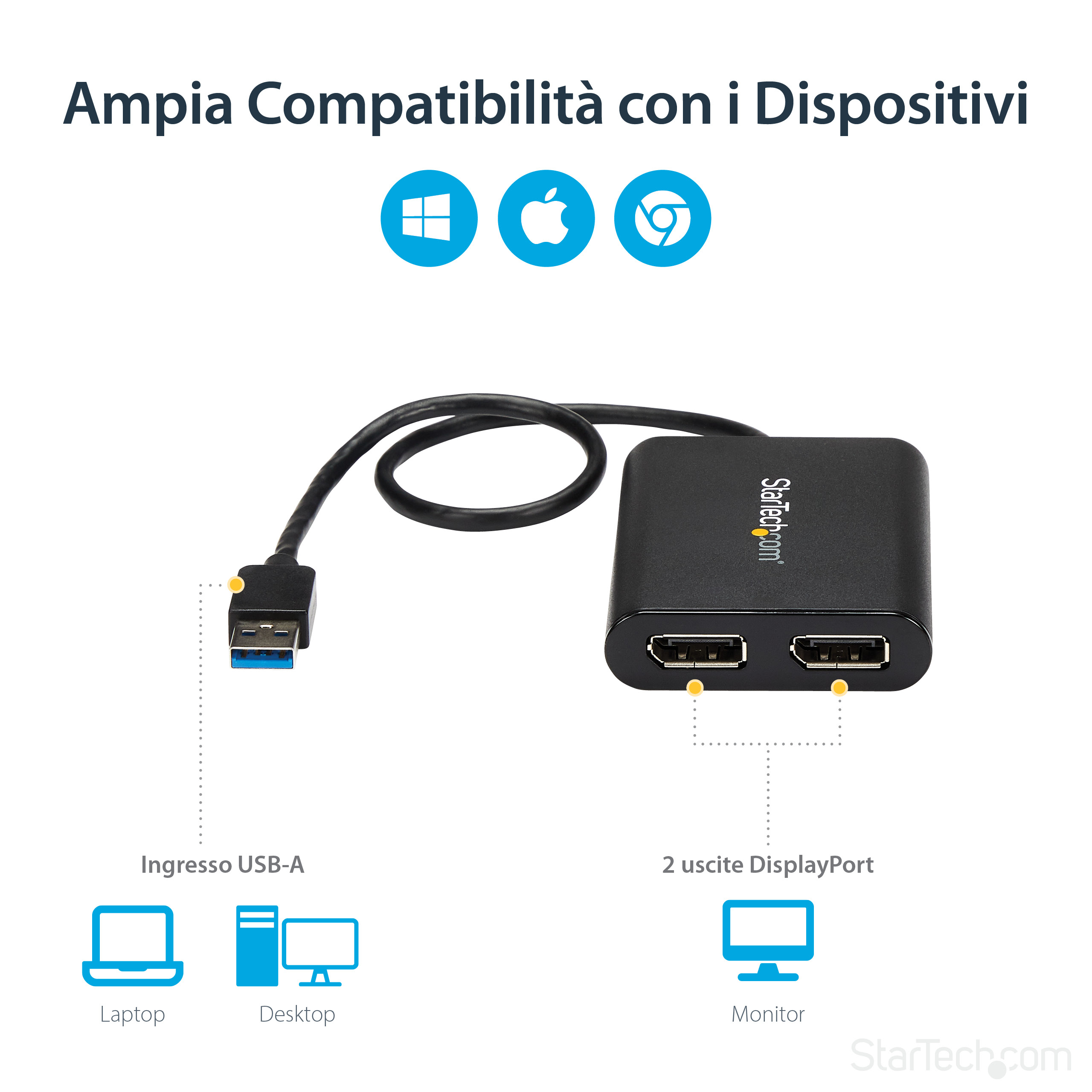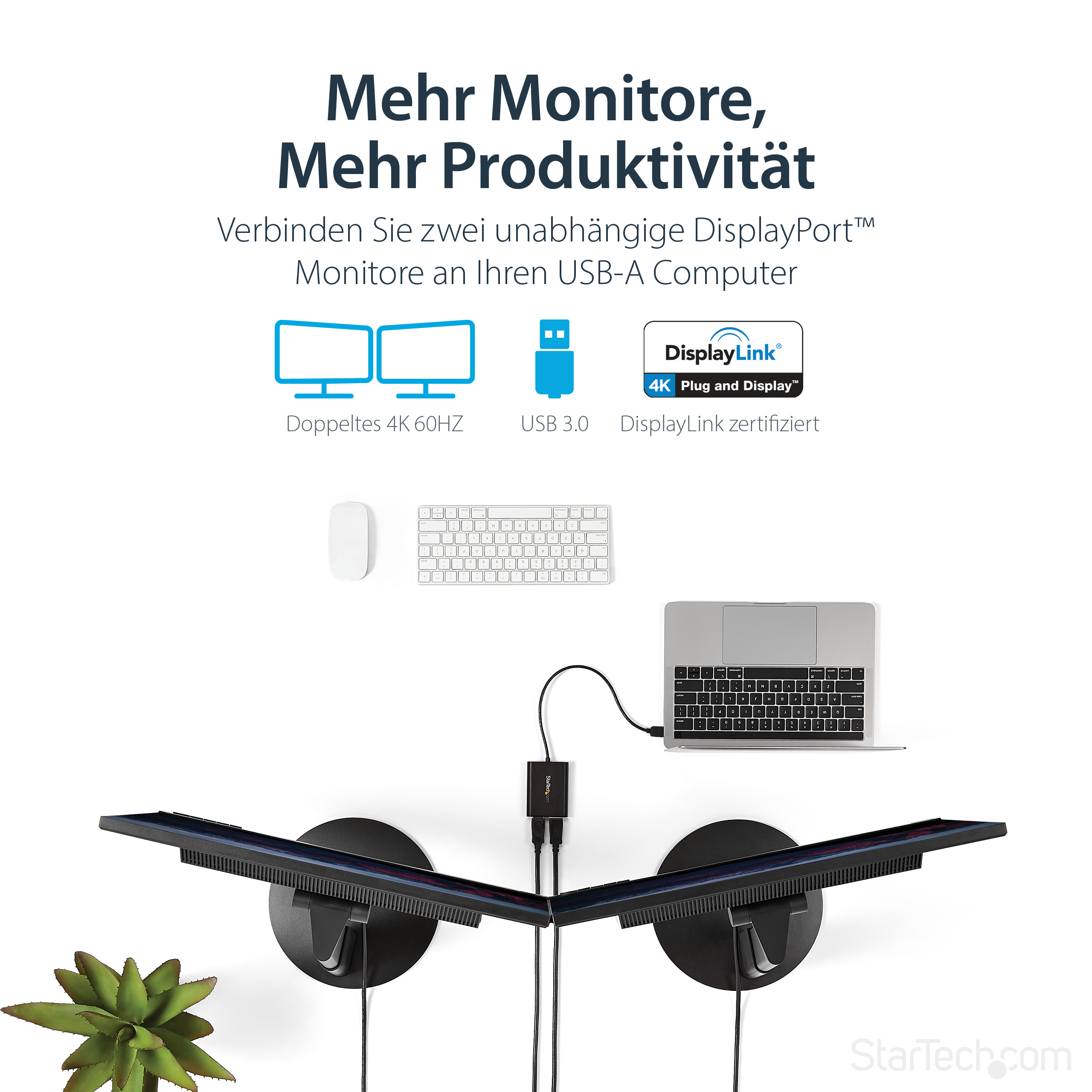 - Enhances workspace efficiency by enabling multiple monitors from a single USB port.