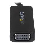 The StarTech.com USB32VGAV USB graphics adapter features a sleek, compact design that fits effortlessly into any workspace. Its lightweight build and durable casing make it highly portable, perfect for mobile professionals and flexible office setups. The understated black finish complements modern office aesthetics while providing robust protection for the internal components.