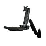 The StarTech.com WALLSTS1 desktop sit-stand workplace features a sleek, minimalist design with a matte black finish that complements modern office aesthetics. Its compact footprint and clean lines make it unobtrusive yet functional, blending effortlessly into diverse workspace environments. The sturdy build conveys reliability while maintaining an approachable, user-friendly interface for effortless height adjustments.