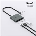 The TP-Link UH3020C interface hub features a sleek, minimalist design with a matte finish that complements modern office aesthetics. Its compact footprint ensures it fits neatly on any desk without clutter. The sturdy casing provides durability, while the intuitive port layout allows easy access and cable management, making it a practical addition to any workspace.