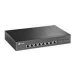 The TP-Link TL-SX1008 network switch features a sleek, compact metal chassis that fits neatly into any rack or desktop setup. Its minimalist design with LED indicators provides clear status visibility without clutter. The fanless construction ensures quiet operation, making it ideal for open office spaces or small server rooms. Overall, it combines practicality with a professional aesthetic suited to modern business environments.