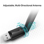 The TP-Link Archer T2U Plus features a sleek, compact design with a matte black finish that complements professional office setups. Its external antenna is adjustable, allowing users to position it for maximum signal strength without compromising desk space. Lightweight and portable, it fits easily into any USB port, making it a practical choice for both fixed and mobile workstations.
