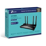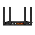 The TP-Link Archer VX1800v wireless router features a sleek, modern design with a compact footprint suitable for office desks or server rooms. Its matte black finish and subtle LED indicators provide a professional aesthetic without distraction. The router’s ventilation design ensures efficient heat dissipation, maintaining performance during extended operation.