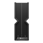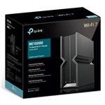 The TP-Link Archer BE700 wireless router features a sleek, modern design with a compact form factor suitable for office desktops or server rooms. Its understated black chassis blends seamlessly into professional environments. LED indicators provide clear status updates without being intrusive, while multiple external antennas ensure strong and consistent wireless coverage throughout the workspace.