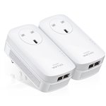 The TP-Link TL-PA9020P KIT PowerLine network adapter features a compact, sleek white design that blends seamlessly into office environments. Its integrated power socket maintains a clean workspace by eliminating the need for additional power strips. The LED indicators provide clear status updates, making network monitoring straightforward for IT teams. Overall, it combines functionality with a professional aesthetic suitable for any business setting.