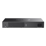 The TP-Link Omada ES224G network switch features a sleek, compact metal chassis designed for durability and efficient heat dissipation. Its understated industrial design fits neatly into server racks or office shelves without drawing attention. The front panel’s LED indicators provide clear, real-time status updates, simplifying network monitoring for IT teams. Overall, it balances functionality with a professional aesthetic suitable for any business environment.