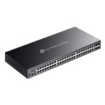 The TP-Link Omada SG5452X network switch features a sleek, professional design with a sturdy metal enclosure that fits standard 19-inch racks. Its front panel is equipped with clear LED indicators for easy status monitoring, while the quiet cooling system ensures minimal noise in office settings. The intuitive port layout facilitates straightforward cable management, making it a practical choice for busy IT departments.