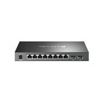 The TP-Link Omada SG2210P network switch features a compact, sturdy metal chassis with a sleek black finish that fits neatly into any server rack or office setup. Its intuitive LED indicators provide clear status updates at a glance, while the fanless design ensures quiet operation. The layout of ports and buttons is user-friendly, making installation and maintenance straightforward for IT teams.