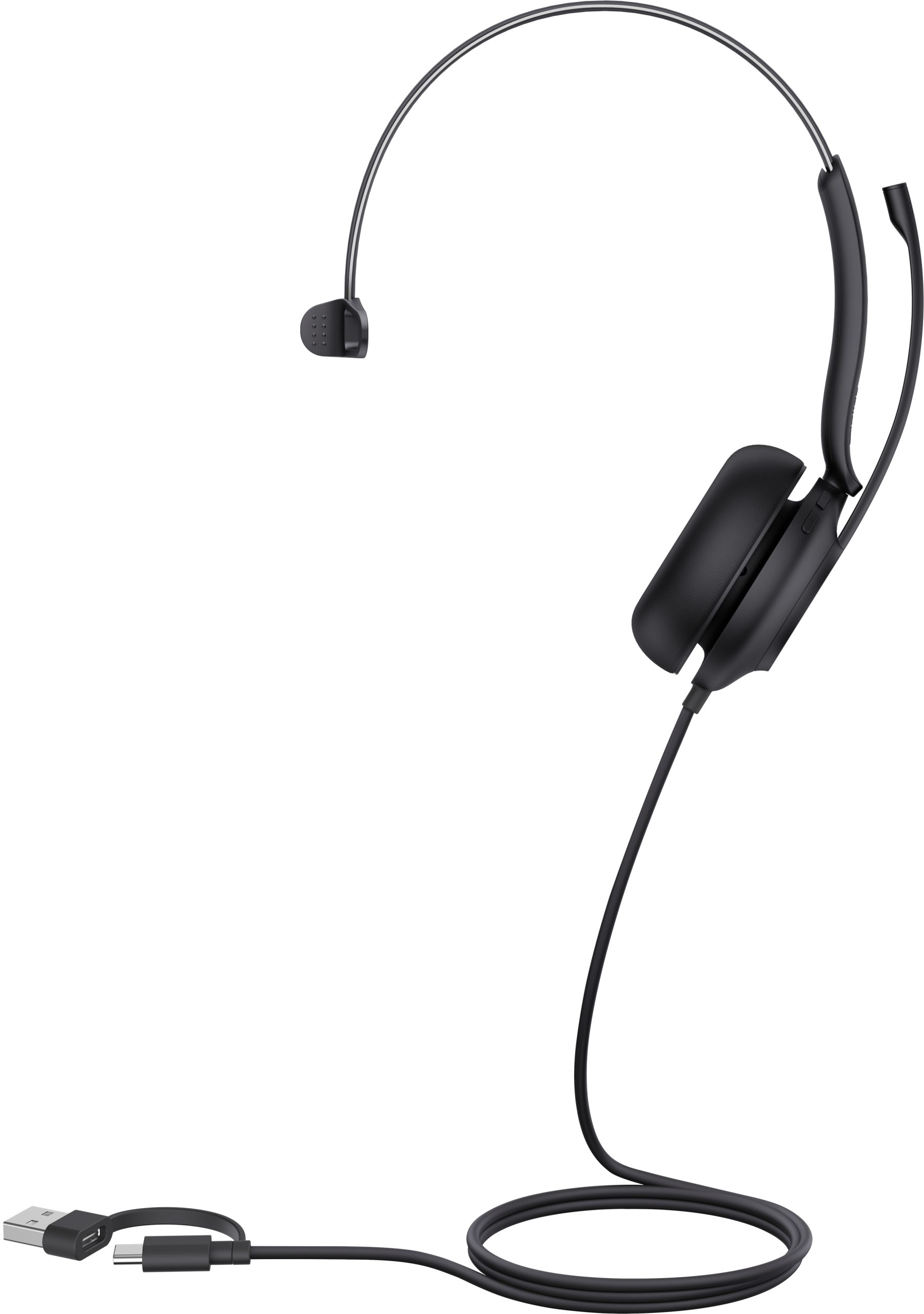 The Yealink UH35 Mono Teams USB-C/A features a sleek, professional design with a lightweight frame that ensures comfort during prolonged use. Its adjustable headband and soft ear cushions provide a secure fit, while the discreet boom microphone maintains a clean aesthetic. The headset’s minimalist style complements any modern office setup, reinforcing a polished corporate image.
